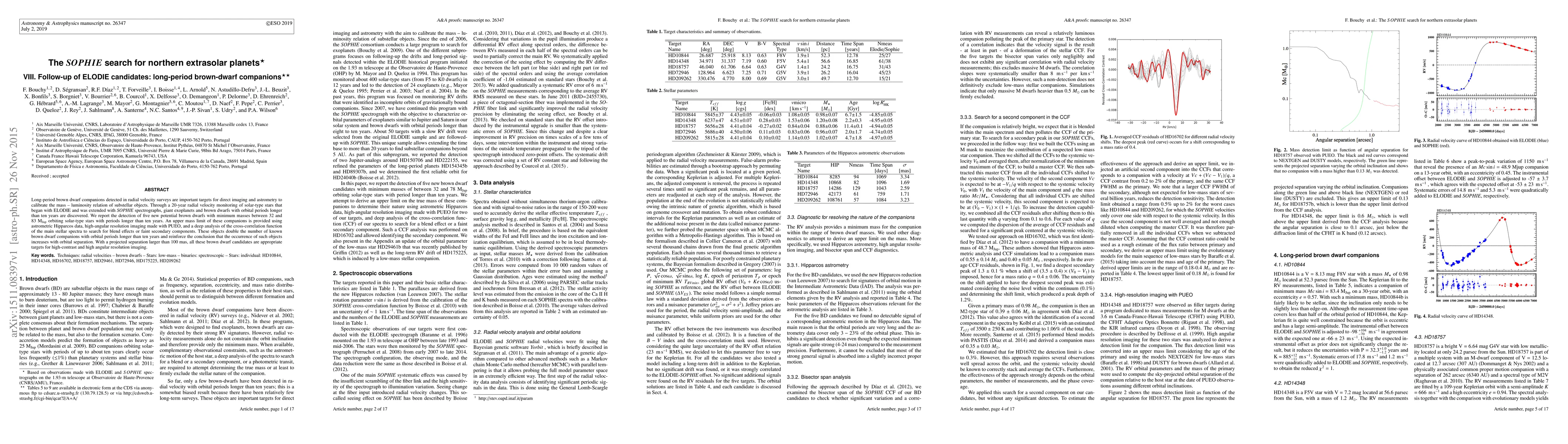 Long-period brown dwarf companions detected in radial velocity surveys are important targets for direct imaging and astrometry to calibrate the mass-luminosity relation of substellar objects. Through a 20-year radial velocity monitoring of solar-type stars that began with ELODIE and was extended with SOPHIE spectrographs, giant exoplanets and brown dwarfs with orbital periods longer than ten years are discovered. We report the detection of five new potential brown dwarfs with minimum masses between 32 and 83 Jupiter mass orbiting solar-type stars with periods longer than ten years. An upper mass limit of these companions is provided using astrometric Hipparcos data, high-angular resolution imaging made with PUEO, and a deep analysis of the cross-correlation function of the main stellar spectra to search for blend effects or faint secondary components. These objects double the number of known brown dwarf companions with orbital periods longer than ten years and reinforce the conclusion that the occurrence of such objects increases with orbital separation. With a projected separation larger than 100 mas, all these brown dwarf candidates are appropriate targets for high-contrast and high angular resolution imaging.