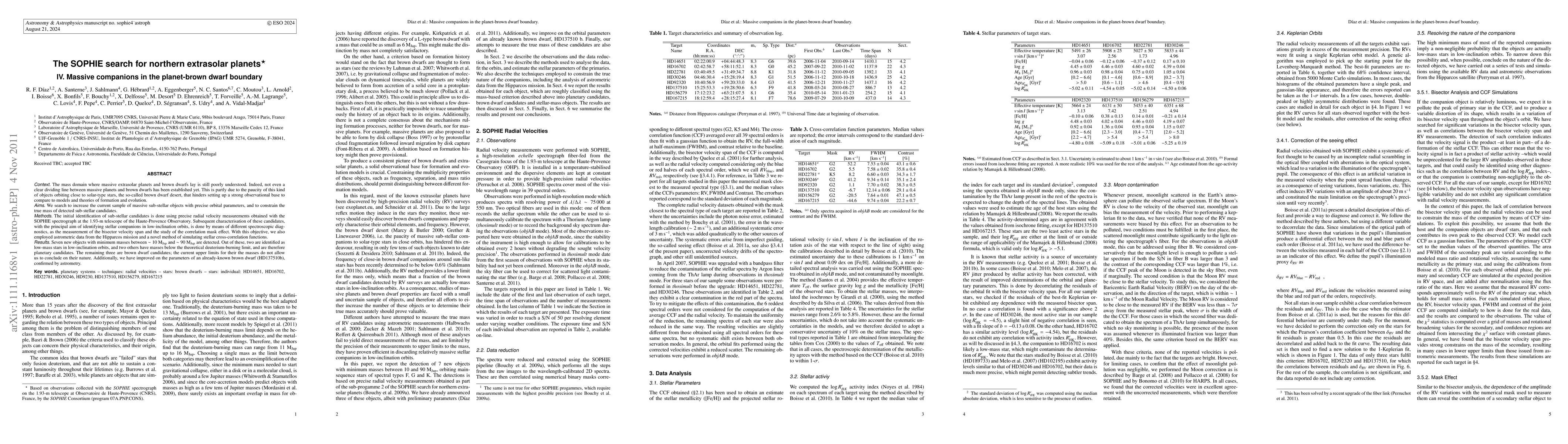 This paper reports the discovery of seven new massive sub-stellar objects using the SOPHIE spectrograph, identifying two low-mass stars, two planetary candidates, and three brown dwarf candidates. The study aims to refine the understanding of the mass domain between planets and brown dwarfs.