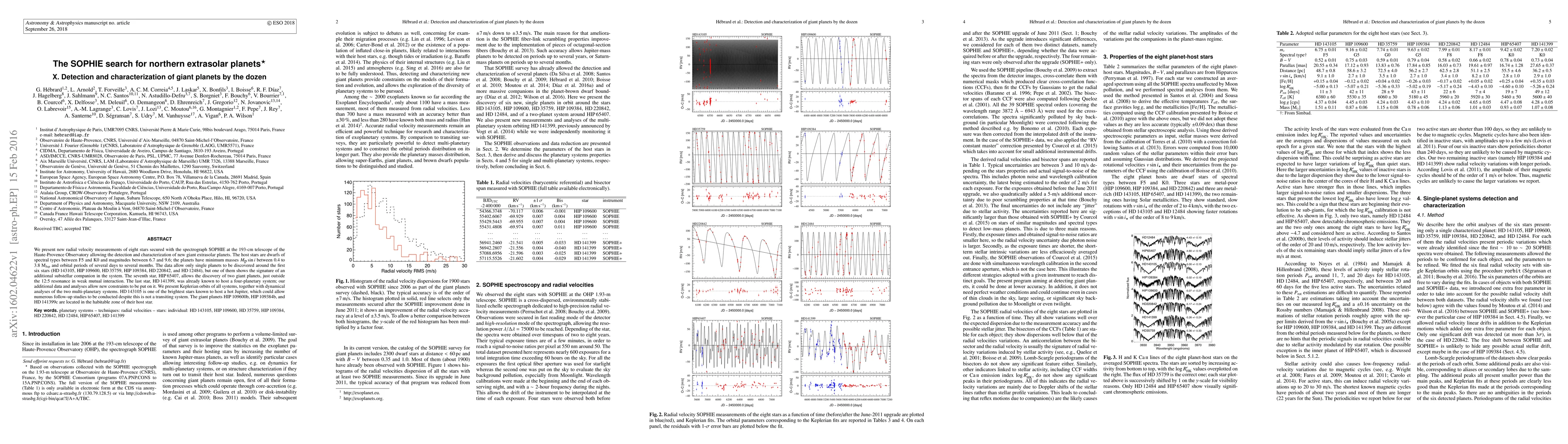 We present new radial velocity measurements of eight stars secured with the spectrograph SOPHIE at the 193-cm telescope of the Haute-Provence Observatory allowing the detection and characterization of new giant extrasolar planets. The host stars are dwarfs of spectral types between F5 and K0 and magnitudes between 6.7 and 9.6; the planets have minimum masses M_p sin i between 0.4 to 3.8 M_Jup and orbital periods of several days to several months. The data allow only single planets to be discovered around the first six stars (HD143105, HIP109600, HD35759, HIP109384, HD220842, and HD12484), but one of them shows the signature of an additional substellar companion in the system. The seventh star, HIP65407, allows the discovery of two giant planets, just outside the 12:5 resonance in weak mutual interaction. The last star, HD141399, was already known to host a four-planetary system; our additional data and analyses allow new constraints to be put on it. We present Keplerian orbits of all systems, together with dynamical analyses of the two multi-planetary systems. HD143105 is one of the brightest stars known to host a hot Jupiter, which could allow numerous follow-up studies to be conducted despite this is not a transiting system. The giant planets HIP109600b, HIP109384b, and HD141399c are located in the habitable zone of their host star.