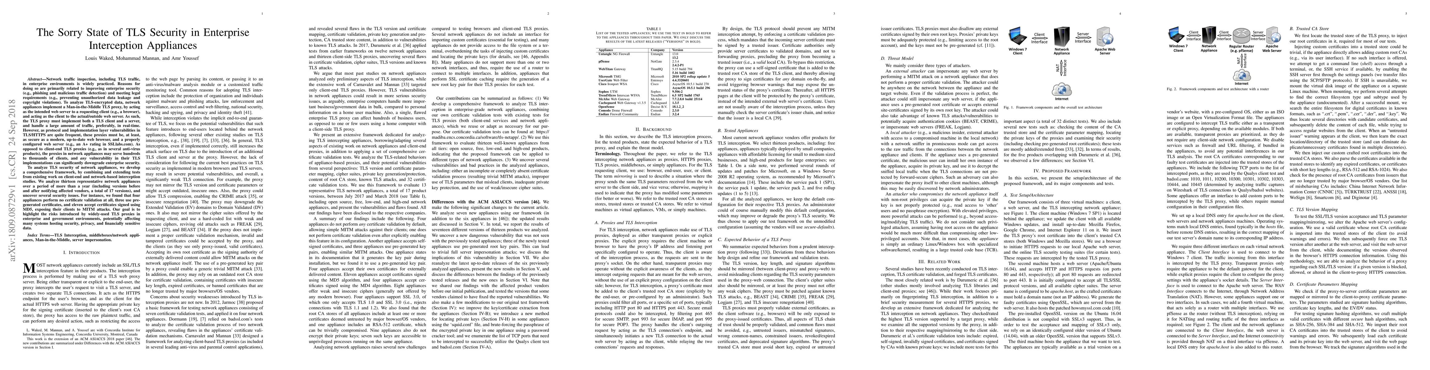 This paper examines the security vulnerabilities in TLS proxies used in enterprise interception appliances, revealing significant flaws in certificate validation and the use of outdated cryptographic methods. The study highlights the risks these vulnerabilities pose to enterprise security, privacy, and sensitive data.
