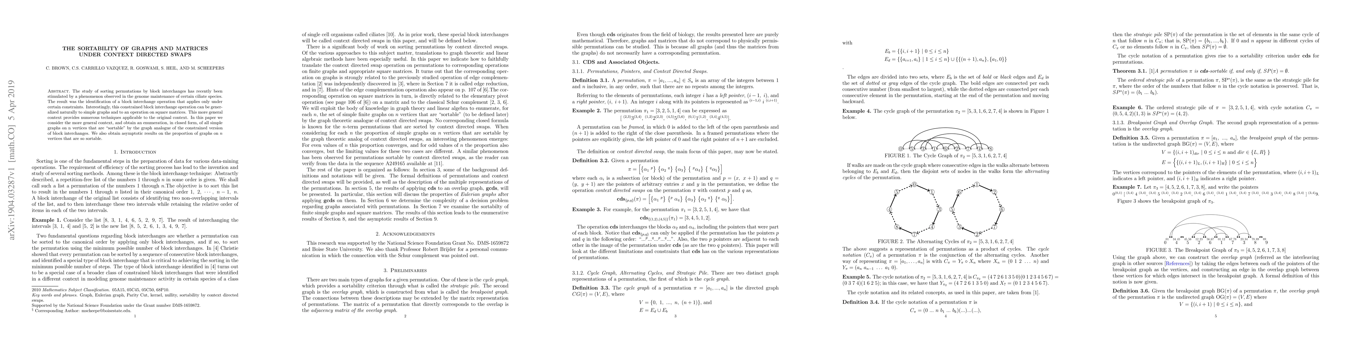 This paper explores the sortable properties of simple graphs and matrices under context-directed swaps, inspired by a biological sorting mechanism. It provides a closed-form enumeration of sortable graphs and asymptotic results on their proportion among all graphs on n vertices.