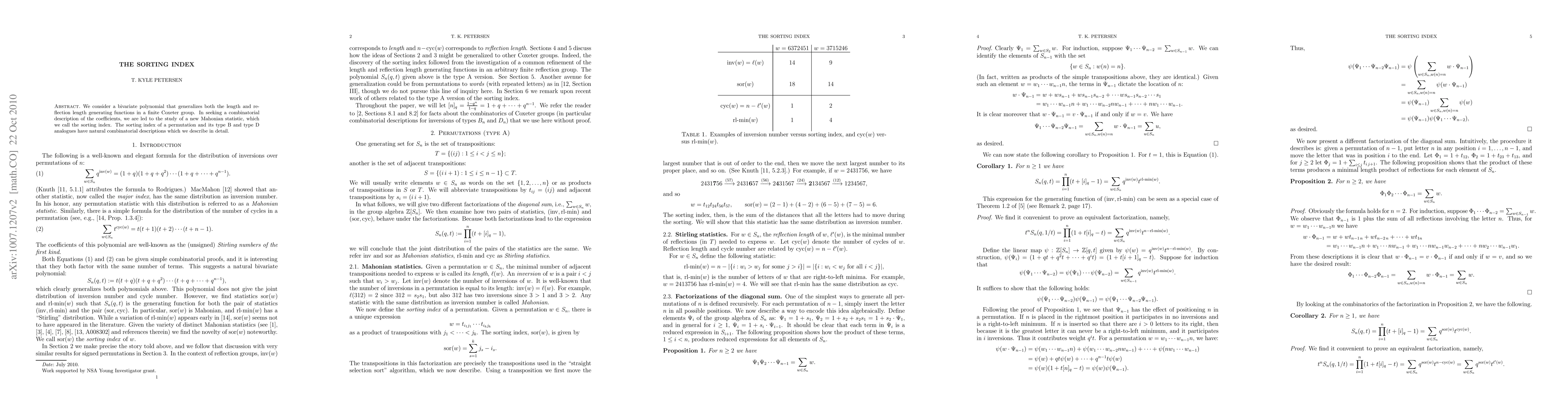 This paper introduces a new Mahonian statistic called the sorting index, which generalizes generating functions in finite Coxeter groups. The authors provide detailed combinatorial descriptions for the sorting index and its analogues in type B and type D permutations.