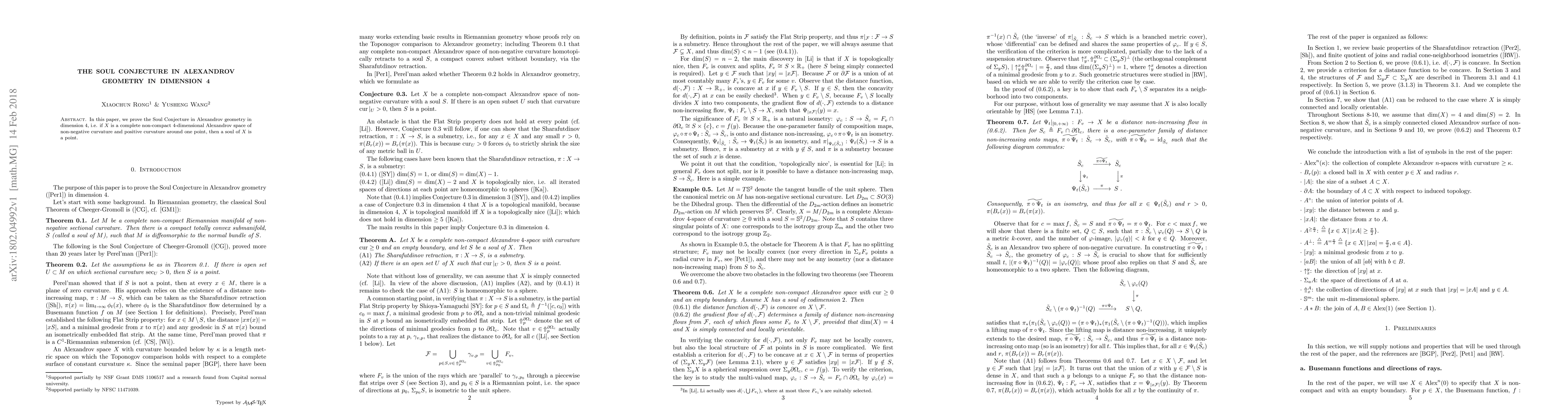 Researchers prove the Soul Conjecture in 4-dimensional Alexandrov geometry, showing that a complete non-compact space with positive curvature around one point has a soul - a single point - at its center.