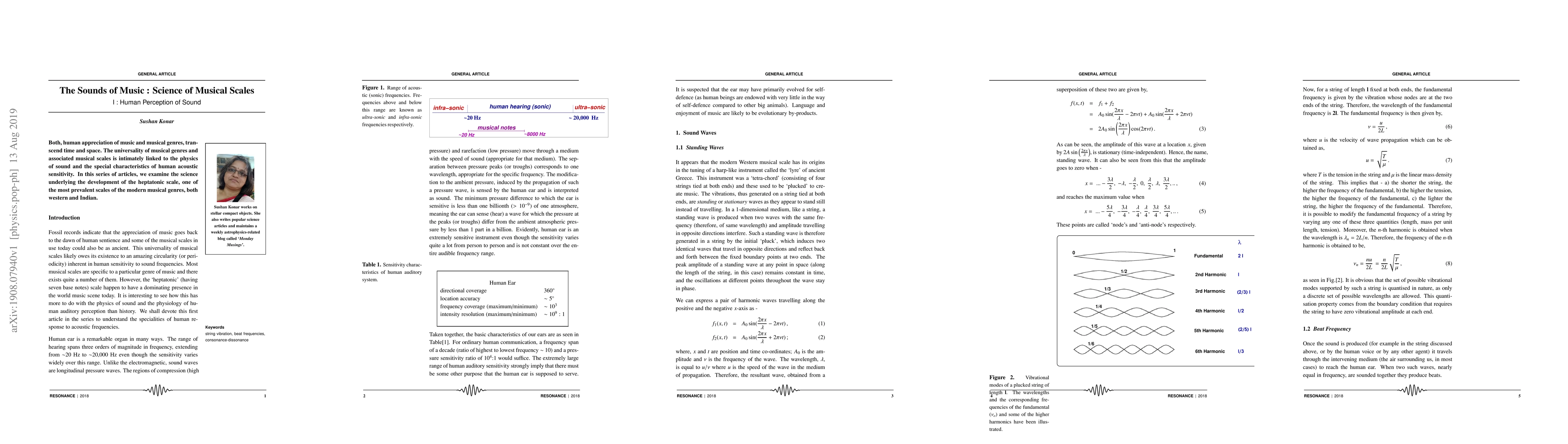 Both, human appreciation of music and musical genres, transcend time and space. The universality of musical genres and associated musical scales is intimately linked to the physics of sound and the special characteristics of human acoustic sensitivity. In this series of articles, we examine the science underlying the development of the heptatonic scale, one of the most prevalent scales of the modern musical genres, both western and Indian.