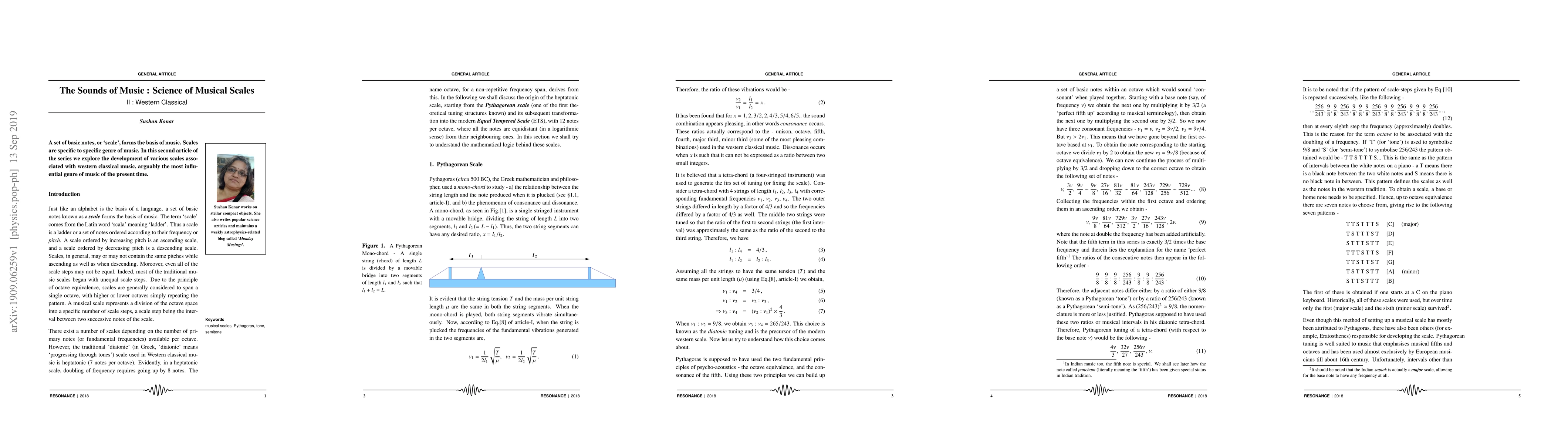 A set of basic notes, or `scale', forms the basis of music. Scales are specific to specific genre of music. In this second article of the series we explore the development of various scales associated with western classical music, arguably the most influential genre of music of the present time.