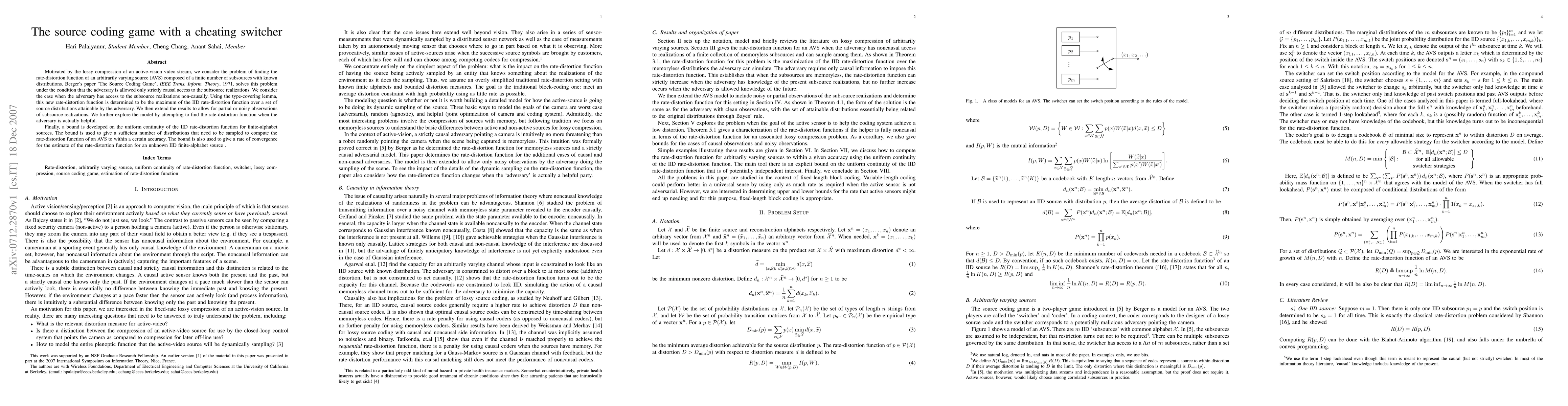 Motivated by the lossy compression of an active-vision video stream, we consider the problem of finding the rate-distortion function of an arbitrarily varying source (AVS) composed of a finite number of subsources with known distributions. Berger's paper `The Source Coding Game', \emph{IEEE Trans. Inform. Theory}, 1971, solves this problem under the condition that the adversary is allowed only strictly causal access to the subsource realizations. We consider the case when the adversary has access to the subsource realizations non-causally. Using the type-covering lemma, this new rate-distortion function is determined to be the maximum of the IID rate-distortion function over a set of source distributions attainable by the adversary. We then extend the results to allow for partial or noisy observations of subsource realizations. We further explore the model by attempting to find the rate-distortion function when the adversary is actually helpful. Finally, a bound is developed on the uniform continuity of the IID rate-distortion function for finite-alphabet sources. The bound is used to give a sufficient number of distributions that need to be sampled to compute the rate-distortion function of an AVS to within a certain accuracy. The bound is also used to give a rate of convergence for the estimate of the rate-distortion function for an unknown IID finite-alphabet source .