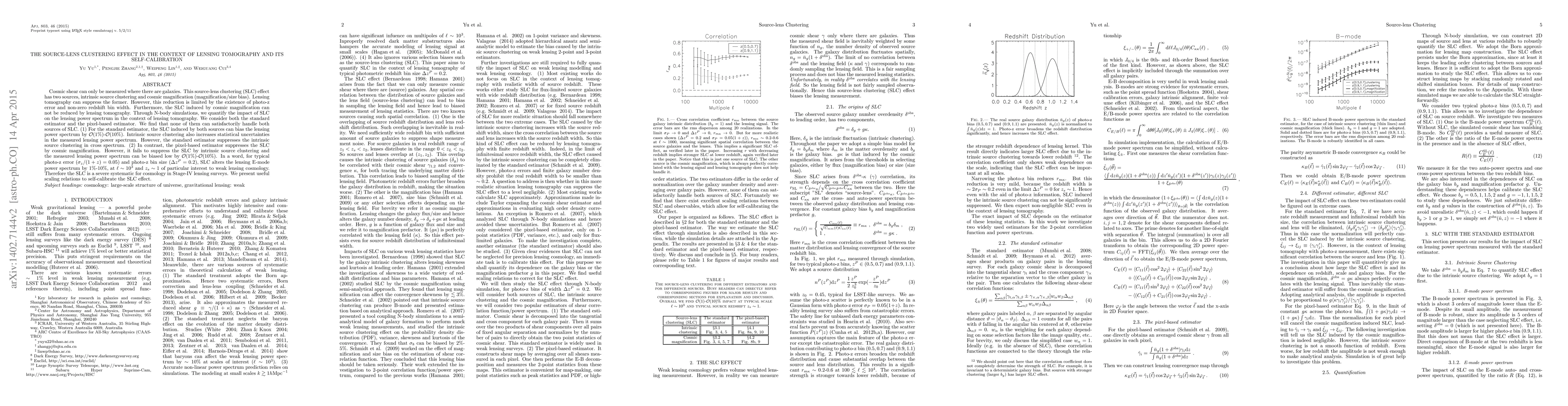 This paper investigates the source-lens clustering (SLC) effect in lensing tomography, finding that both intrinsic source clustering and cosmic magnification biases the lensing power spectrum by 1-10%. Neither the standard nor pixel-based estimators fully address these biases, highlighting SLC as a significant systematic error for Stage-IV weak lensing surveys. The authors propose scaling relations for self-calibration of the SLC effect.