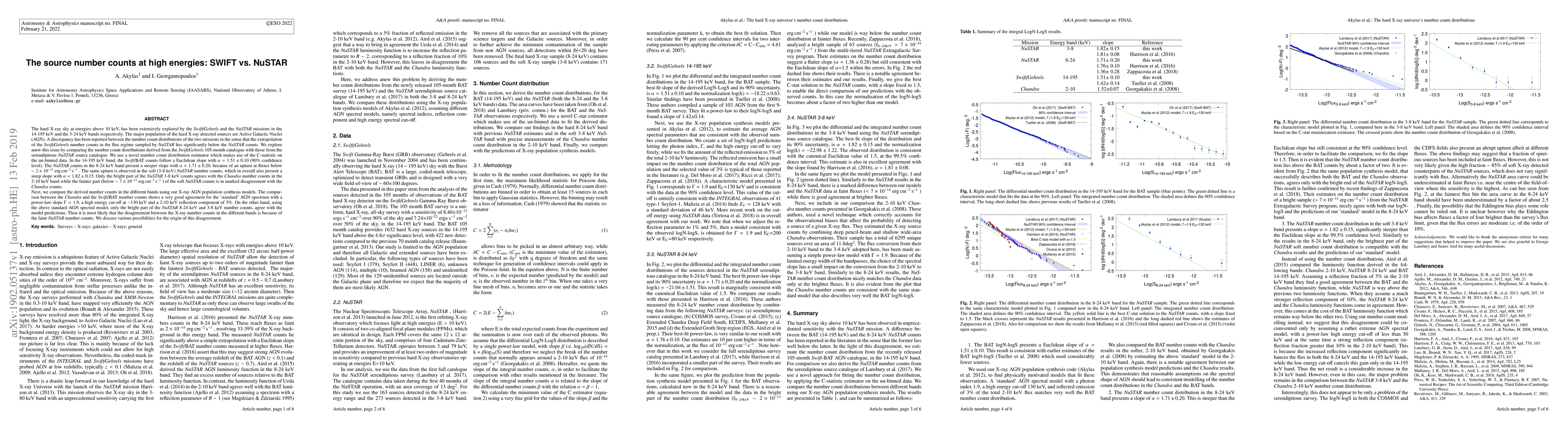 This paper compares high-energy X-ray source number counts from Swift/BAT and NuSTAR missions, finding that while Swift/BAT counts follow a Euclidean slope, NuSTAR counts show a steeper slope due to an upturn at lower fluxes, suggesting discrepancies likely due to faint NuSTAR sources.