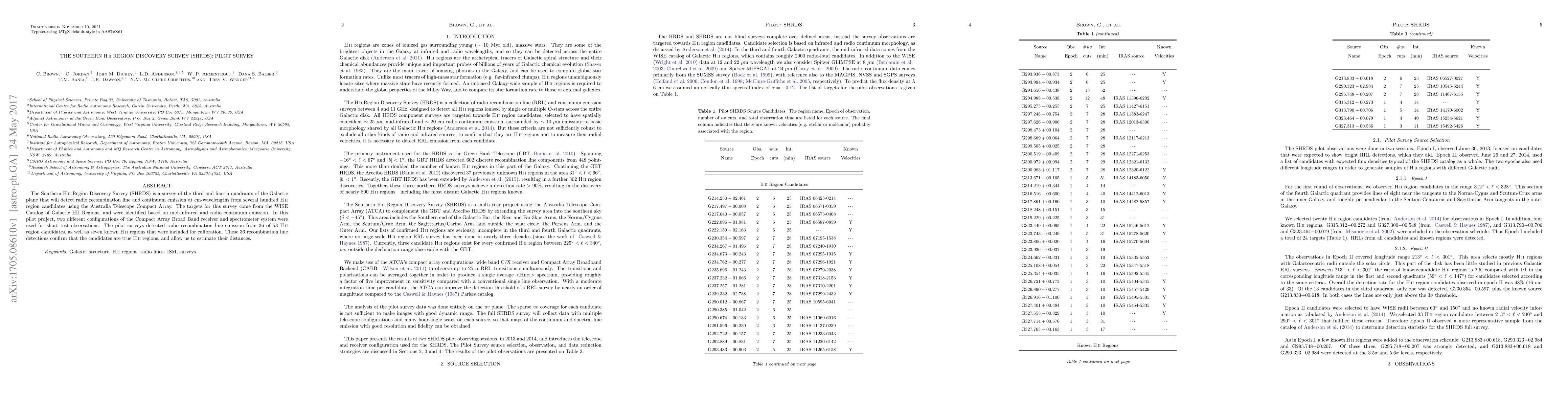 The Southern HII Region Discovery Survey (SHRDS) pilot survey detected radio recombination line emissions from 36 out of 53 HII region candidates, confirming their true nature and enabling distance estimations. This pilot project utilized the Australia Telescope Compact Array to test different configurations of the Broad Band receiver and spectrometer system.