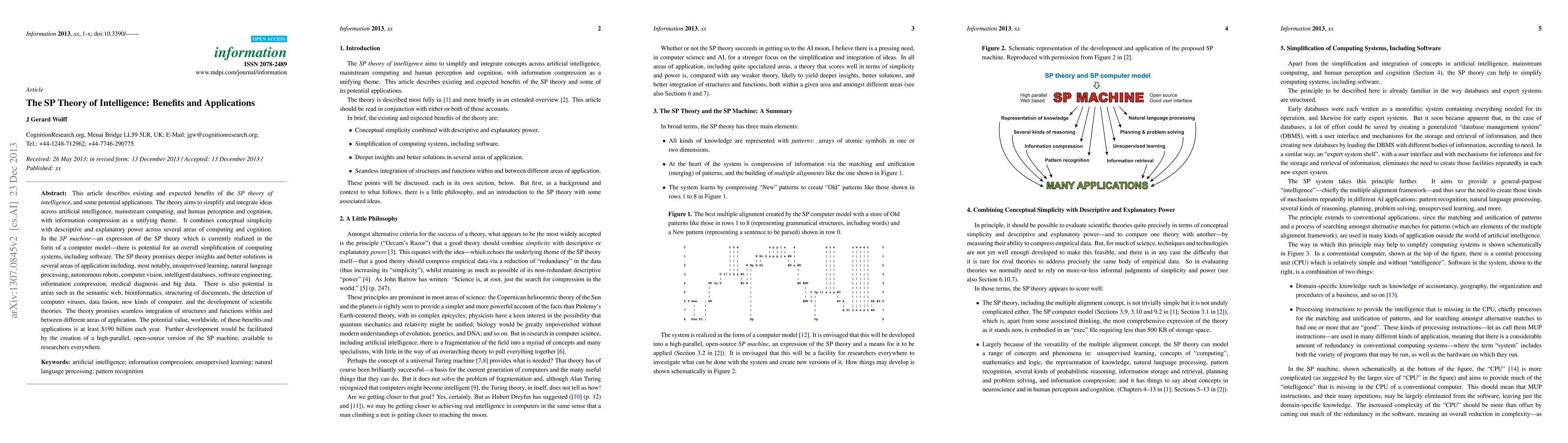 The SP theory of intelligence aims to unify artificial intelligence, computing, and human cognition through information compression, offering simplified and powerful solutions across various fields. It holds promise for significant advancements in unsupervised learning, natural language processing, and more, with an estimated global annual benefit of $190 billion.