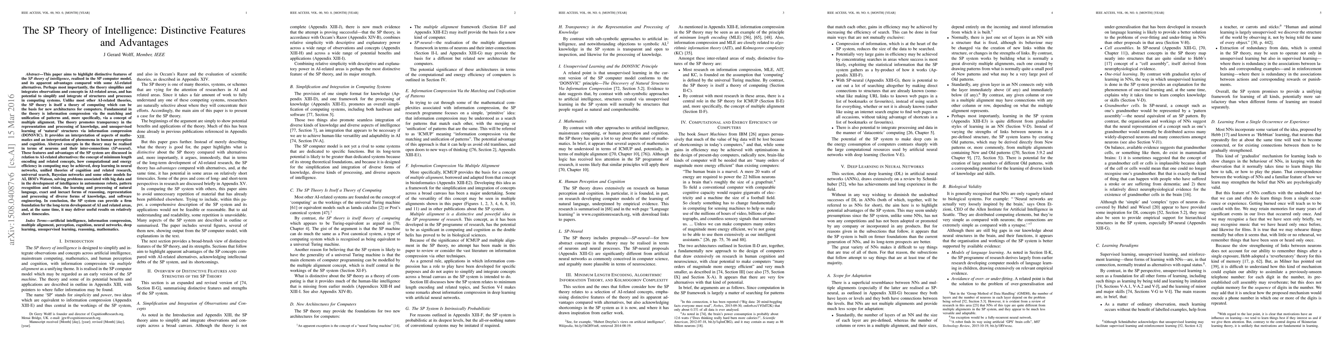This paper presents the SP theory of intelligence, emphasizing its distinctive features such as simplified integration of observations and structures, and its advantages over AI-related alternatives like deep learning and natural language processing. It highlights the potential of the SP system for advancing AI and its applications.