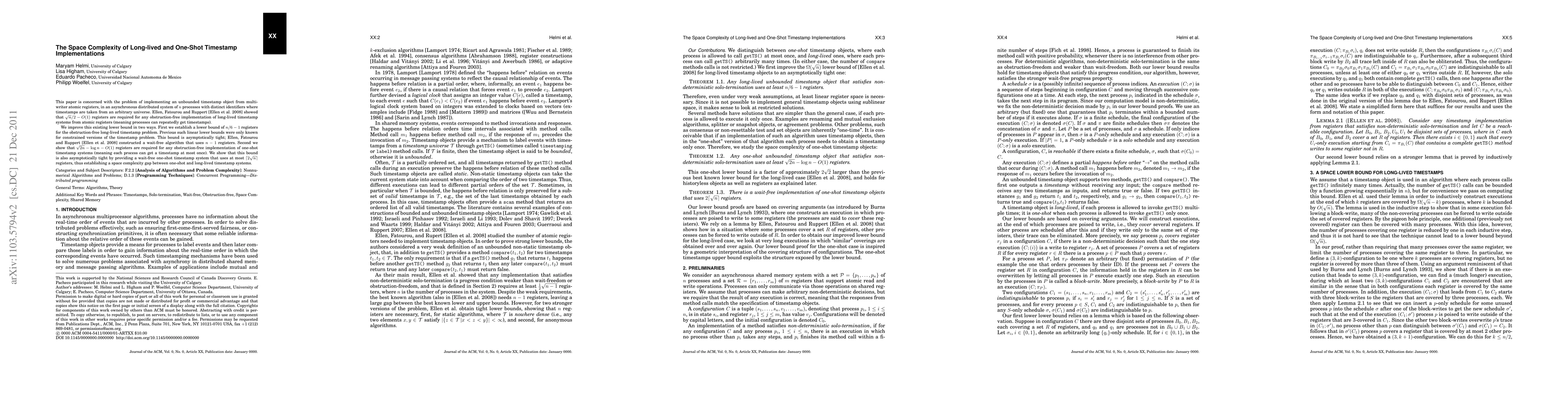 This paper is concerned with the problem of implementing an unbounded timestamp object from multi-writer atomic registers, in an asynchronous distributed system of n processors with distinct identifiers where timestamps are taken from an arbitrary universe. Ellen, Fatourou and Ruppert (2008) showed that sqrt{n}/2-O(1) registers are required for any obstruction-free implementation of long-lived timestamp systems from atomic registers (meaning processors can repeatedly get timestamps). We improve this existing lower bound in two ways. First we establish a lower bound of n/6 - O(1) registers for the obstruction-free long-lived timestamp problem. Previous such linear lower bounds were only known for constrained versions of the timestamp problem. This bound is asymptotically tight; Ellen, Fatourou and Ruppert (2008) constructed a wait-free algorithm that uses n-1 registers. Second we show that sqrt{n} - O(1) registers are required for any obstruction-free implementation of one-shot timestamp systems(meaning each processor can get a timestamp at most once). We show that this bound is also asymptotically tight by providing a wait-free one-shot timestamp system that uses fewer than 2 sqrt{n} registers, thus establishing a space complexity gap between one-shot and long-lived timestamp systems.