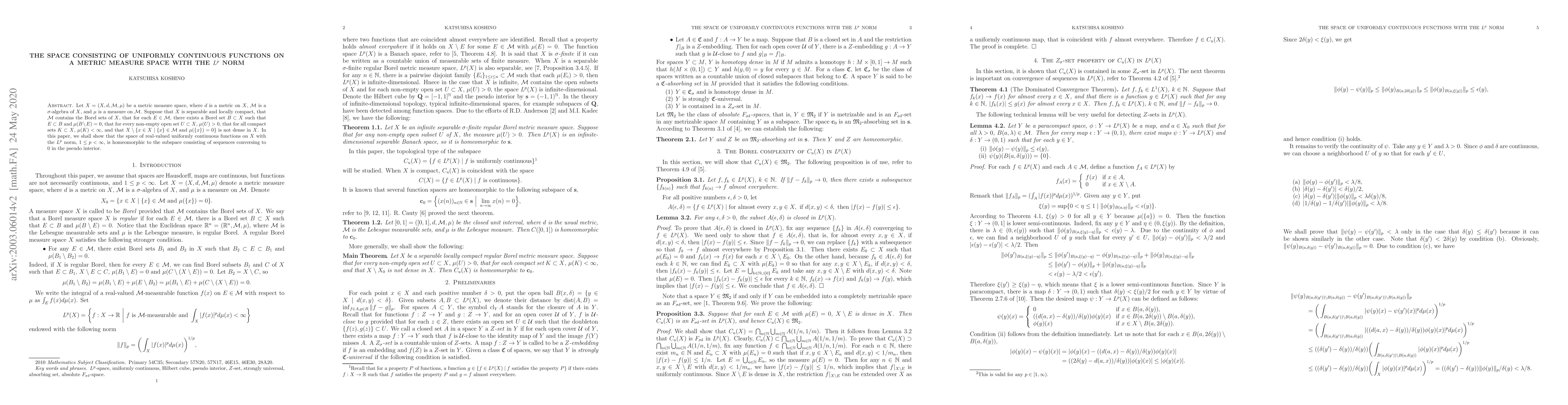In this paper, we shall show that the space of real-valued uniformly continuous functions on a metric measure space with the $L^p$ norm is homeomorphic to the subspace consisting of sequences conversing to $0$ in the pseudo interior.