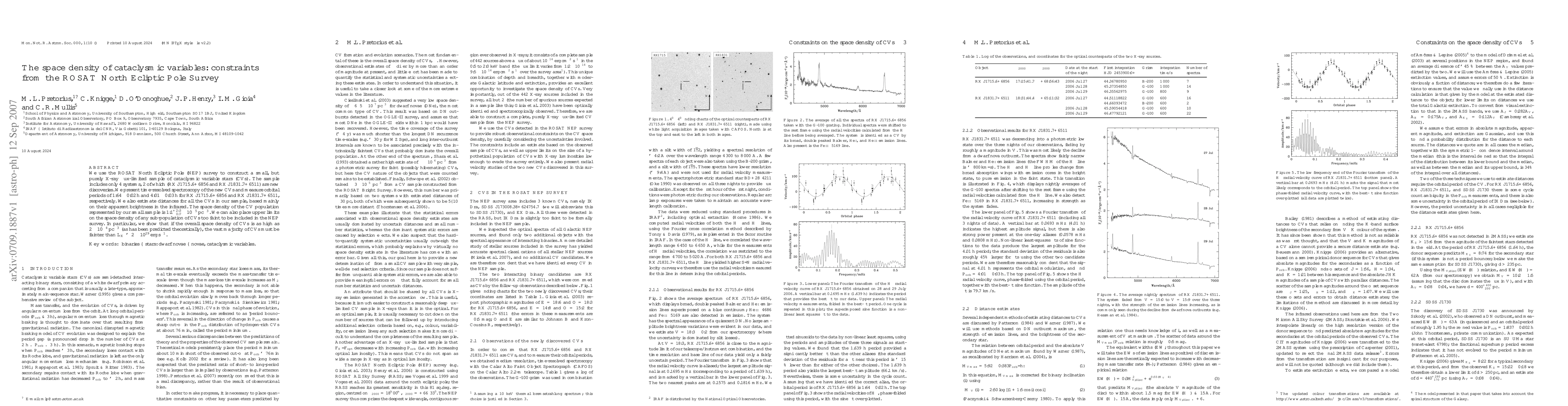 We use the ROSAT North Ecliptic Pole (NEP) survey to construct a small, but purely X-ray flux-limited sample of cataclysmic variable stars (CVs). The sample includes only 4 systems, 2 of which (RX J1715.6+6856 and RX J1831.7+6511) are new discoveries. We present time-resolved spectroscopy of the new CVs and measure orbital periods of 1.64 \pm 0.02 h and 4.01\pm 0.03 h for RX 1715.6+6856 and RX J1831.7+6511, respectively. We also estimate distances for all the CVs in our sample, based mainly on their apparent brightness in the infrared. The space density of the CV population represented by our small sample is (1.1 +2.3/-0.7) 10^-5 pc^-3. We can also place upper limits on the space density of any sub-population of CVs too faint to be included in the NEP survey. In particular, we show that if the overall space density of CVs is as high as 2 10^-4 pc^-3 (as has been predicted theoretically), the vast majority of CVs must be fainter than L_X \simeq 2 10^29 erg/s.