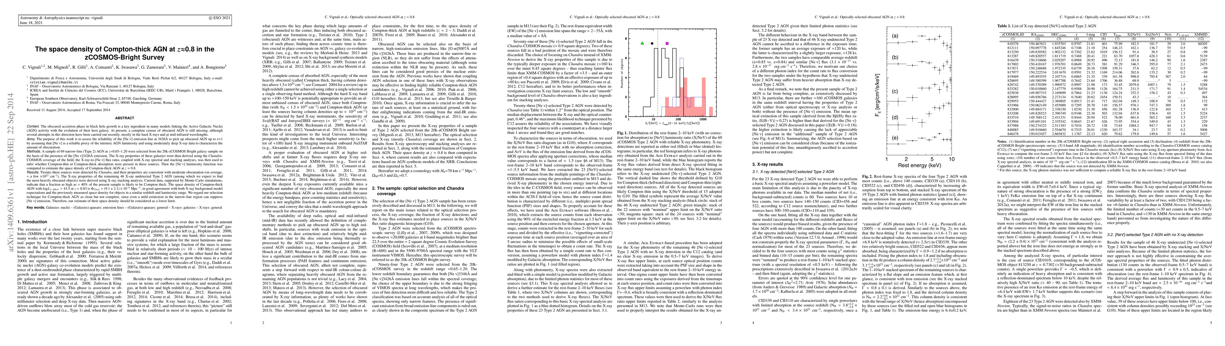 This study assesses the space density of Compton-thick AGN at z~0.8 using the [NeV] emission line as a proxy for intrinsic AGN luminosity in the zCOSMOS-Bright Survey. The analysis suggests that ~40% of the sample may be Compton-thick, estimating the space density of such AGN at z=0.83 to be (9.1±2.1)×10^-6 Mpc^-3, indicating a lower limit due to potential suppression of [NeV] emission.