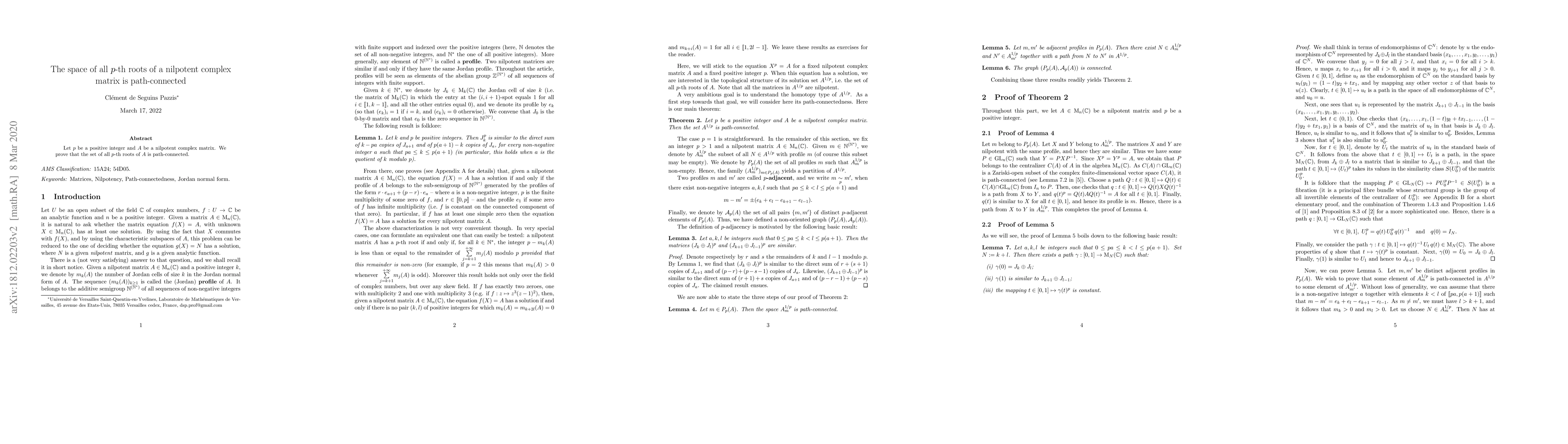 A research paper proves that the set of all p-th roots of a nilpotent complex matrix is path-connected, meaning there is a continuous way to transform one root into another within this set.