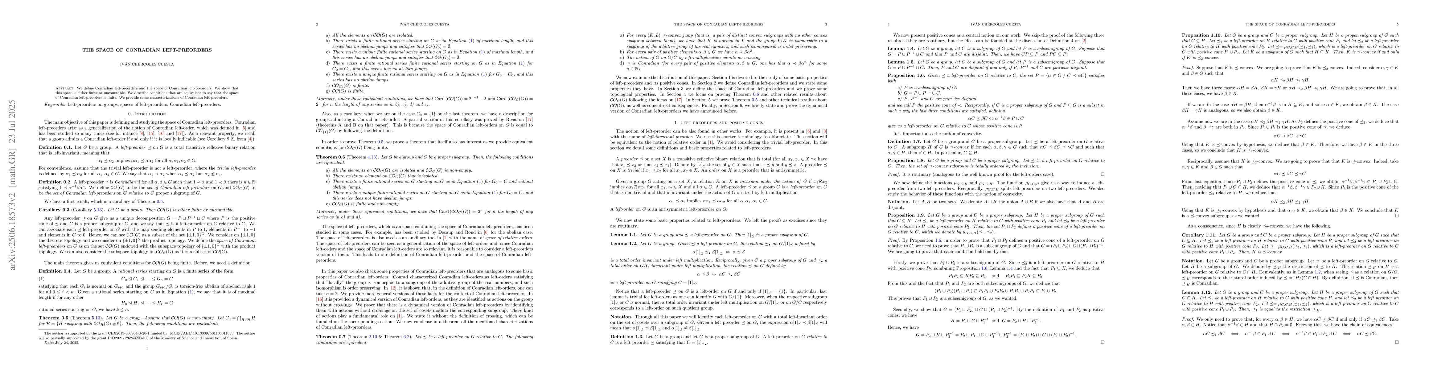 We define conradian left-preorders and the space of conradian left-preorders. We show that this space is either finite or uncountable. We describe conditions that are equivalent to say that the space of conradian left-preorders is finite. We provide some characterizations of conradian left-preorders.