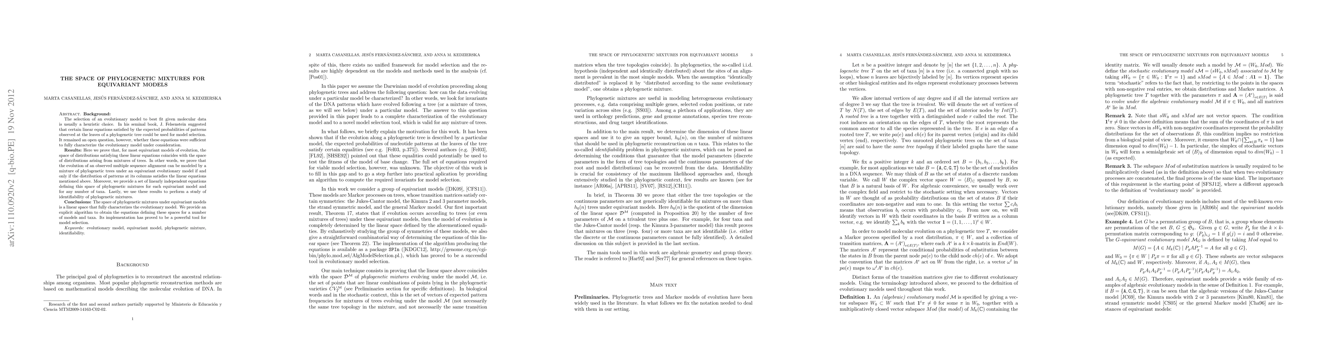 This paper proves that for equivariant evolutionary models, the distributions satisfying Felsenstein's linear equations correspond exactly to mixtures of phylogenetic trees. It provides a set of defining equations for this space, aiding in model selection and addressing identifiability issues.