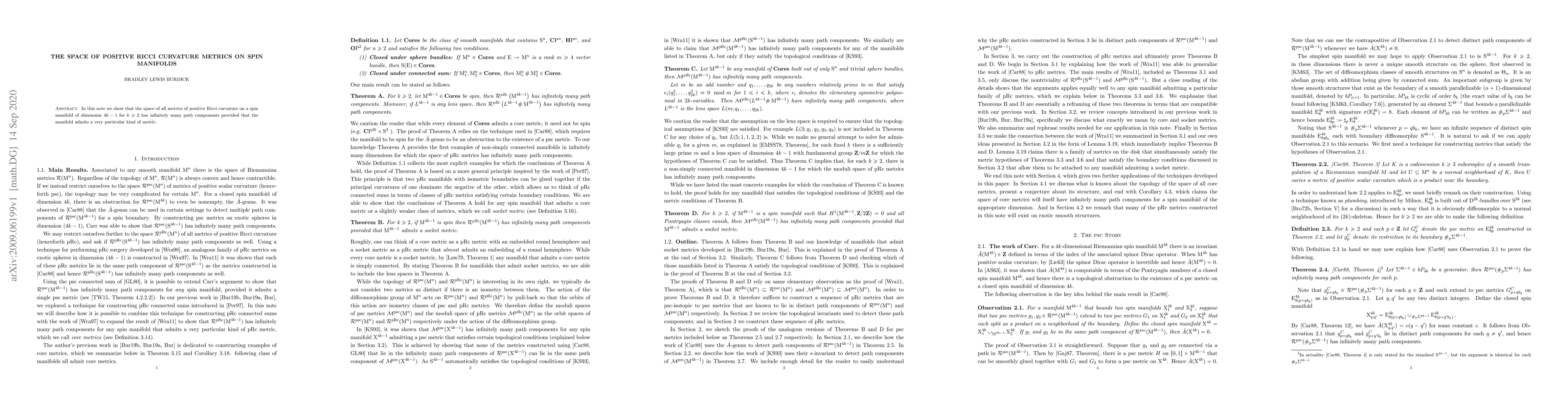 In this note we show that the space of all metrics of positive Ricci curvature on a spin manifold of dimension 4k-1 for k at least 2 has infinitely many path components provided that the manifold admits a very particular kind of metric.