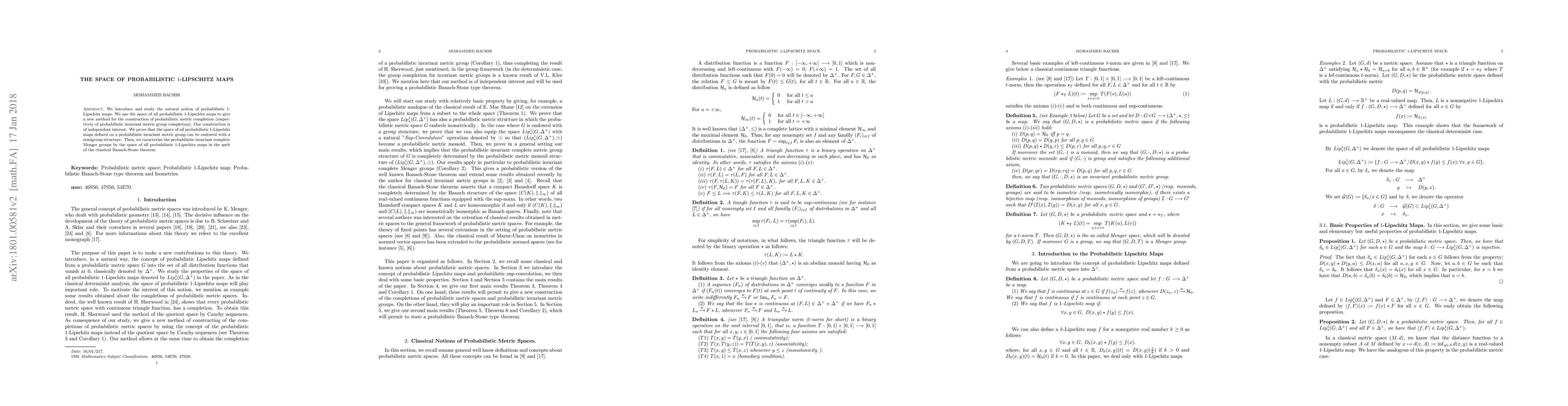 This paper introduces probabilistic 1-Lipschitz maps and shows they form a probabilistic metric space when defined on a probabilistic metric space, with implications for monoid structures and invariant complete Menger groups.