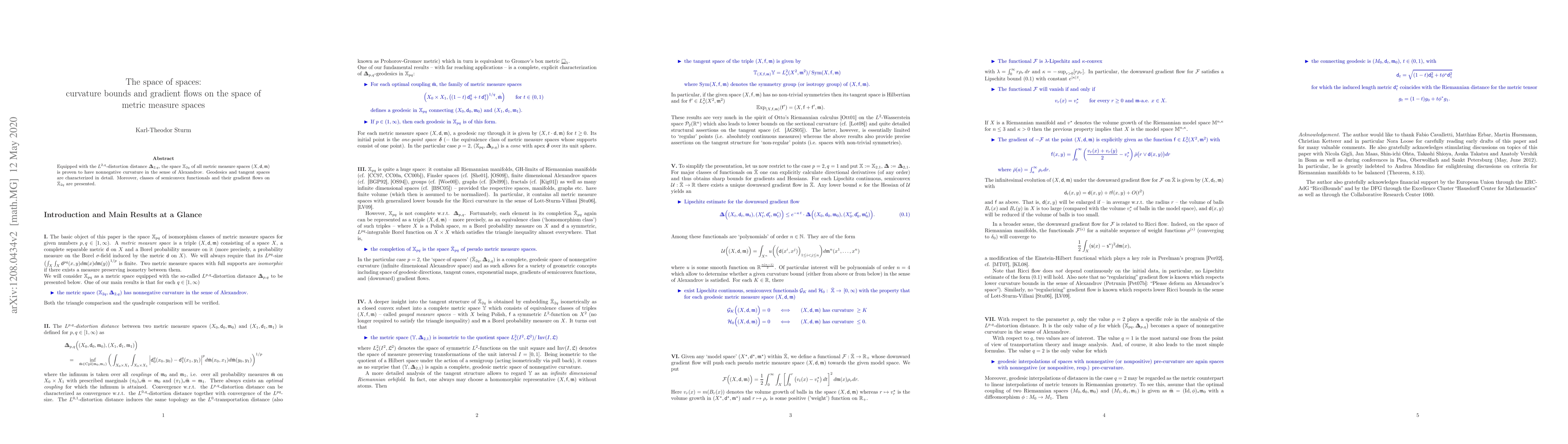 Equipped with the L^2-distortion distance, the space "X" of all metric measure spaces (X,d,m) is proven to have nonnegative curvature in the sense of Alexandrov. Geodesics and tangent spaces are characterized in detail. Moreover, classes of semiconvex functionals and their gradient flows on "X" are presented.