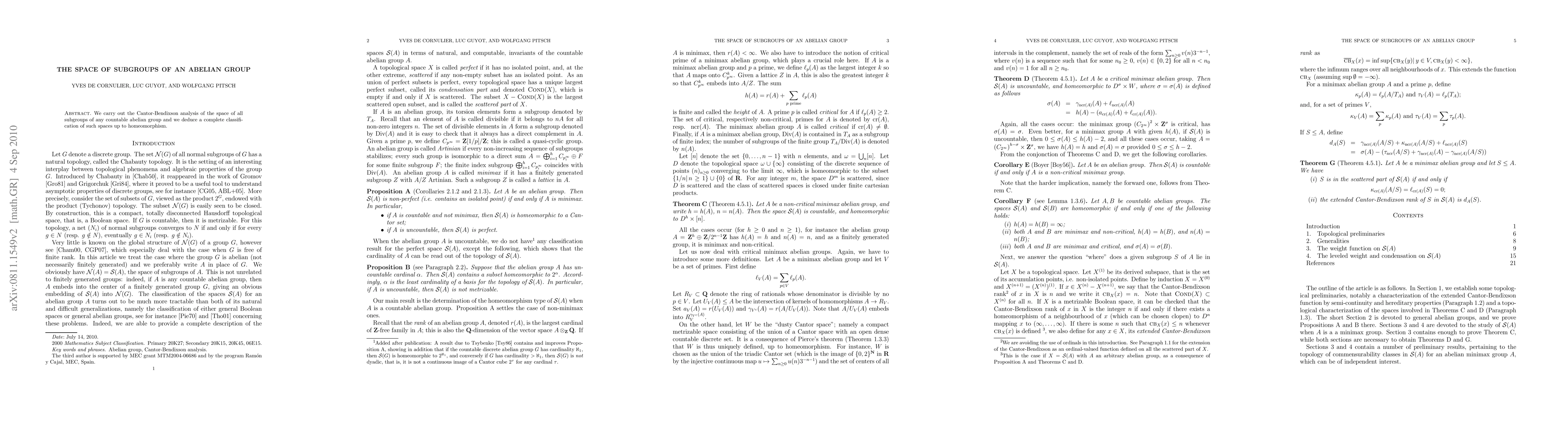 This paper conducts a Cantor-Bendixson analysis on the space of all subgroups of any countable abelian group, leading to a complete classification of these spaces up to homeomorphism.