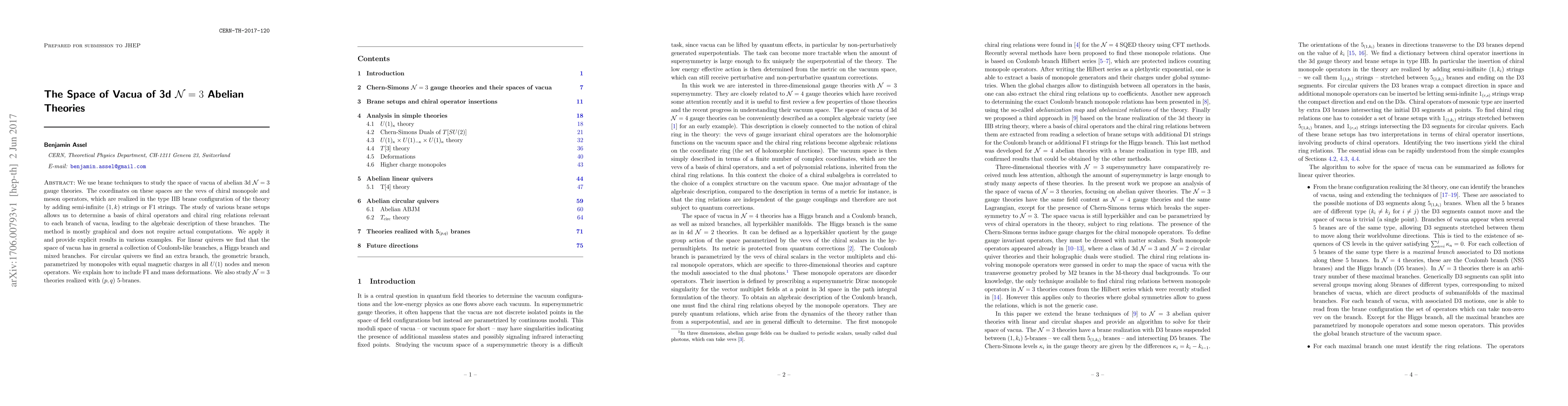This paper uses brane techniques to explore the space of vacua in 3d $\mathcal{N}=3$ abelian gauge theories, identifying chiral operators and their algebraic relations through graphical methods. It provides explicit results for linear and circular quivers, revealing distinct Coulomb, Higgs, and geometric branches, and discusses the inclusion of deformations.
