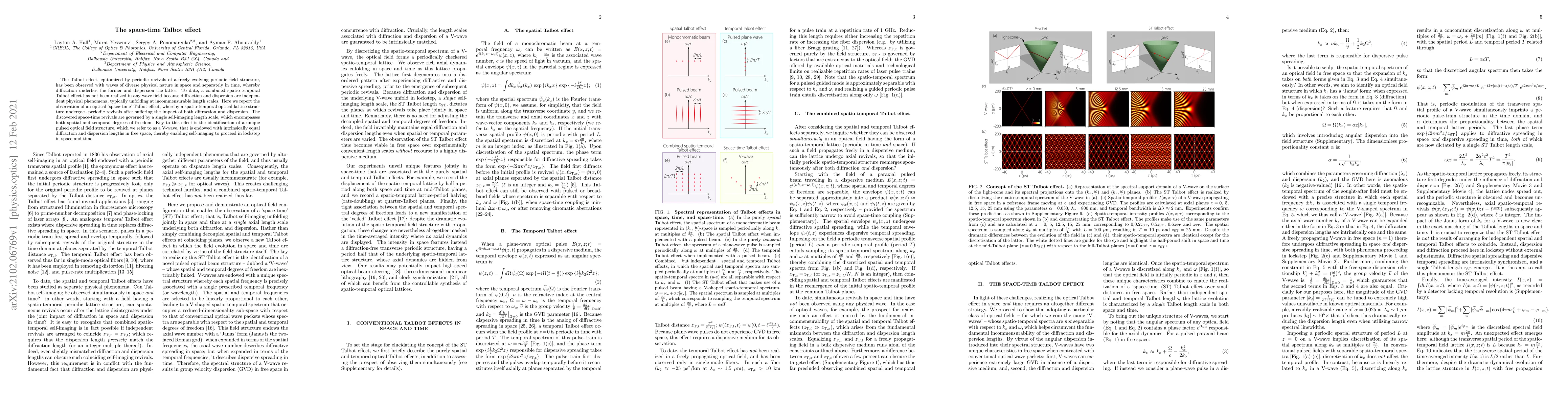 This paper reports the first observation of a combined spatio-temporal Talbot effect in optical fields, where a novel V-wave structure enables periodic revivals after diffraction and dispersion. The effect is governed by a unified self-imaging length scale that synchronizes spatial and temporal revivals.