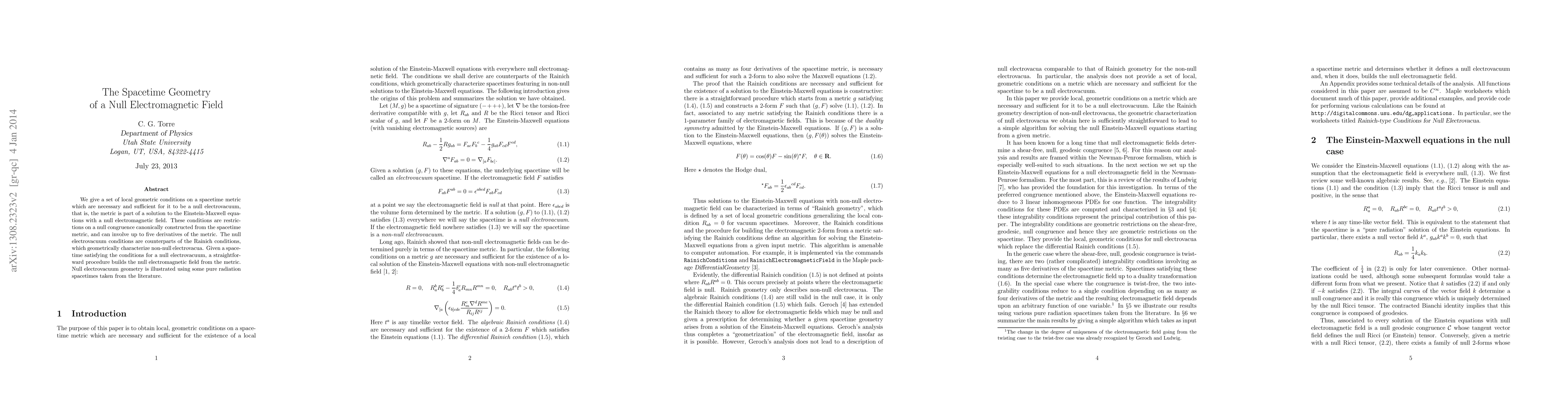 We give a set of local geometric conditions on a spacetime metric which are necessary and sufficient for it to be a null electrovacuum, that is, the metric is part of a solution to the Einstein-Maxwell equations with a null electromagnetic field. These conditions are restrictions on a null congruence canonically constructed from the spacetime metric, and can involve up to five derivatives of the metric. The null electrovacuum conditions are counterparts of the Rainich conditions, which geometrically characterize non-null electrovacua. Given a spacetime satisfying the conditions for a null electrovacuum, a straightforward procedure builds the null electromagnetic field from the metric. Null electrovacuum geometry is illustrated using some pure radiation spacetimes taken from the literature.