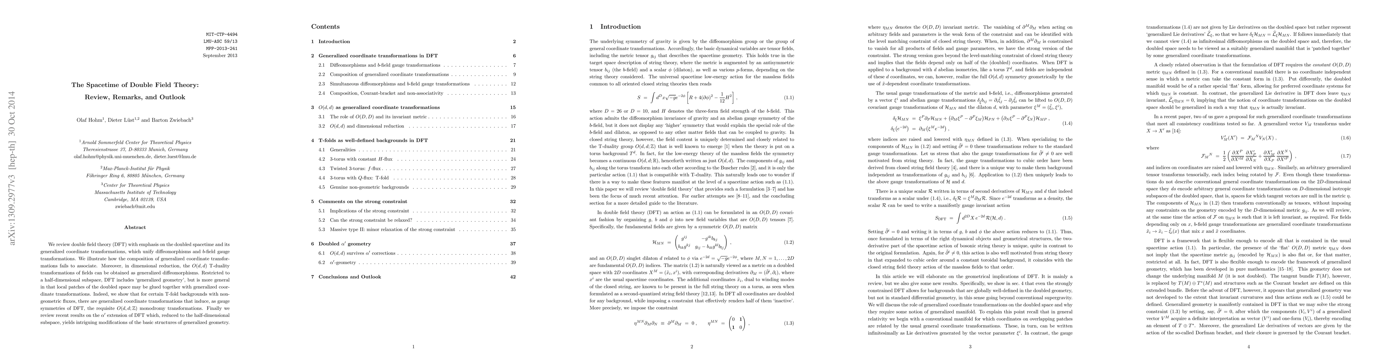 We review double field theory (DFT) with emphasis on the doubled spacetime and its generalized coordinate transformations, which unify diffeomorphisms and b-field gauge transformations. We illustrate how the composition of generalized coordinate transformations fails to associate. Moreover, in dimensional reduction, the O(d,d) T-duality transformations of fields can be obtained as generalized diffeomorphisms. Restricted to a half-dimensional subspace, DFT includes `generalized geometry', but is more general in that local patches of the doubled space may be glued together with generalized coordinate transformations. Indeed, we show that for certain T-fold backgrounds with non-geometric fluxes, there are generalized coordinate transformations that induce, as gauge symmetries of DFT, the requisite O(d,d;Z) monodromy transformations. Finally we review recent results on the \alpha' extension of DFT which, reduced to the half-dimensional subspace, yields intriguing modifications of the basic structures of generalized geometry.