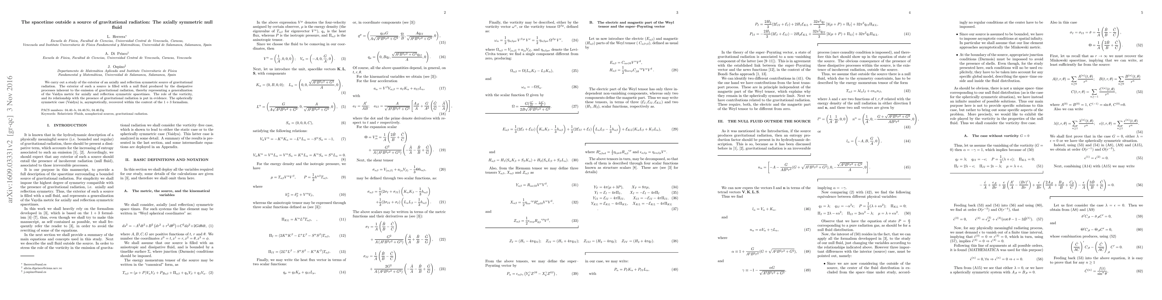 We carry out a study of the exterior of an axially and reflection symmetric source of gravitational radiation. The exterior of such a source is filled with a null fluid produced by the dissipative processes inherent to the emission of gravitational radiation, thereby representing a generalization of the Vaidya metric for axially and reflection symmetric spacetimes. The role of the vorticity, and its relationship with the presence of gravitational radiation is put in evidence. The spherically symmetric case (Vaidya) is, asymptotically, recovered within the context of the $1+3$ formalism.