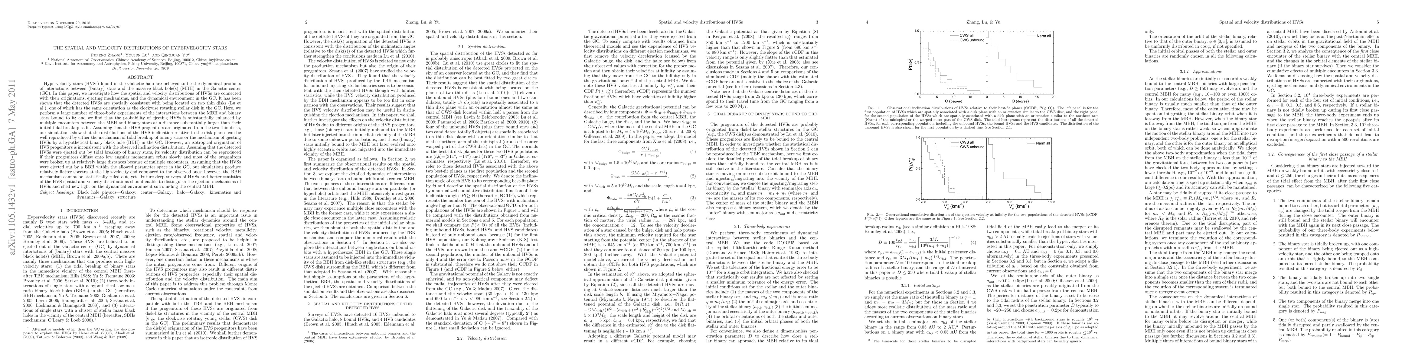 The research examines the origins of hypervelocity stars (HVSs) in the Galactic halo, suggesting they result from interactions with the Galactic Center's massive black hole. Through simulations, the study finds that multiple encounters between the black hole and binary stars enhance HVS ejection probability, explaining their spatial distribution on thin disks. The velocity distribution of HVSs can be reproduced by progenitors diffusing onto low angular momentum orbits, or via a hypothetical binary black hole in the GC. The findings imply that future surveys could distinguish between ejection mechanisms, providing insights into the black hole's dynamical environment.