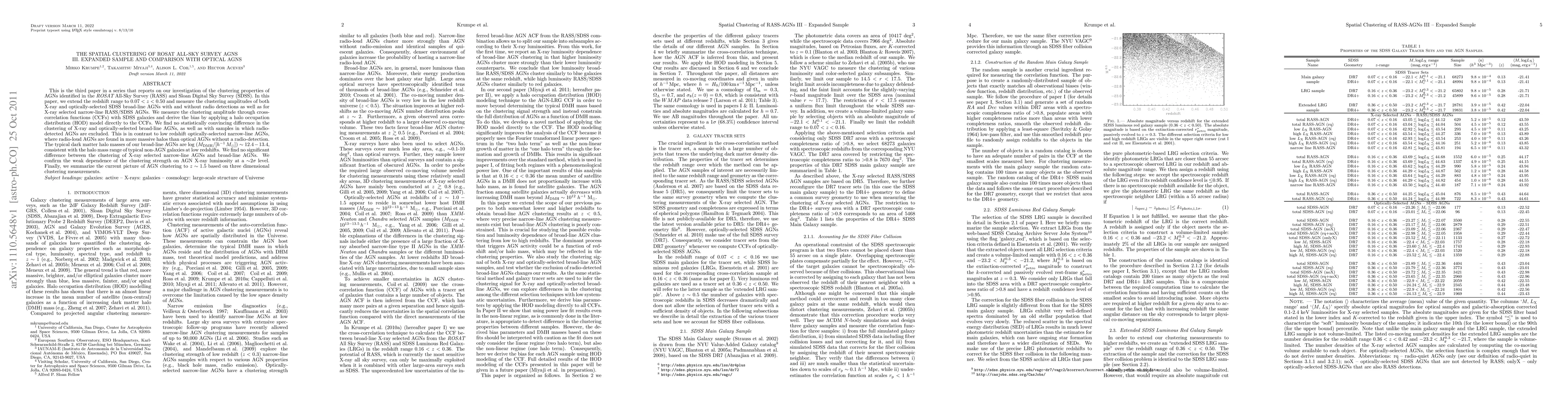 This paper extends the investigation of AGN clustering from the ROSAT All-Sky Survey to include a broader redshift range and compares X-ray and optical AGNs. It finds no significant differences in clustering between X-ray and optically-selected broad-line AGNs, but notes radio-loud AGNs reside in more massive halos than non-radio AGNs.