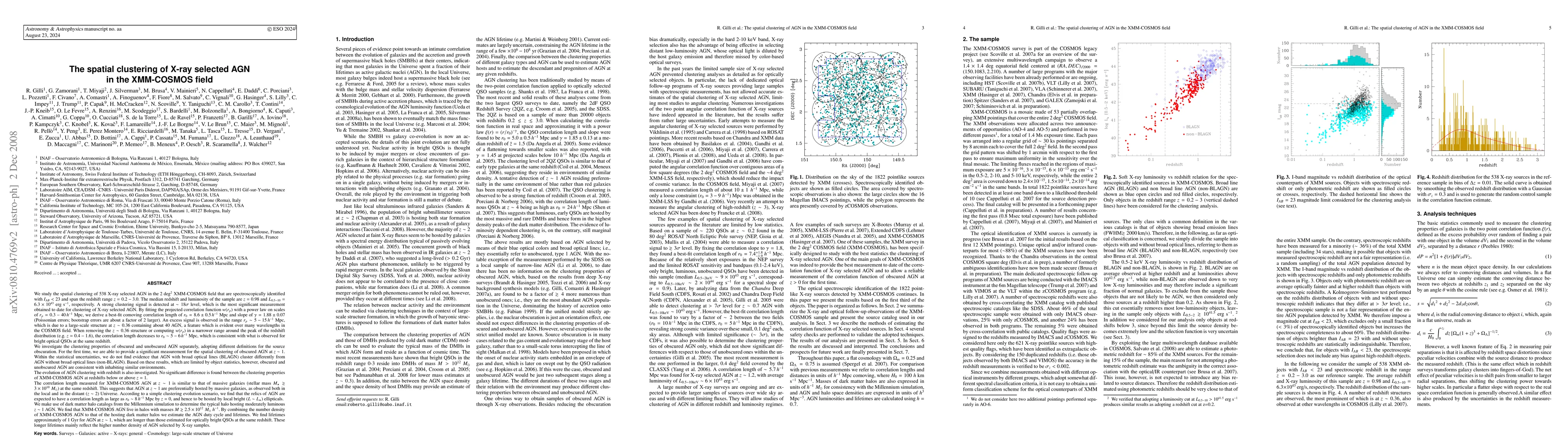 This paper investigates the spatial clustering of 538 X-ray selected AGN in the XMM-COSMOS field, finding a strong clustering signal and a comoving correlation length of 8.6 Mpc/h. The study suggests AGN at z~1 are hosted by massive galaxies, similar to the clustering observed for bright optical quasars.