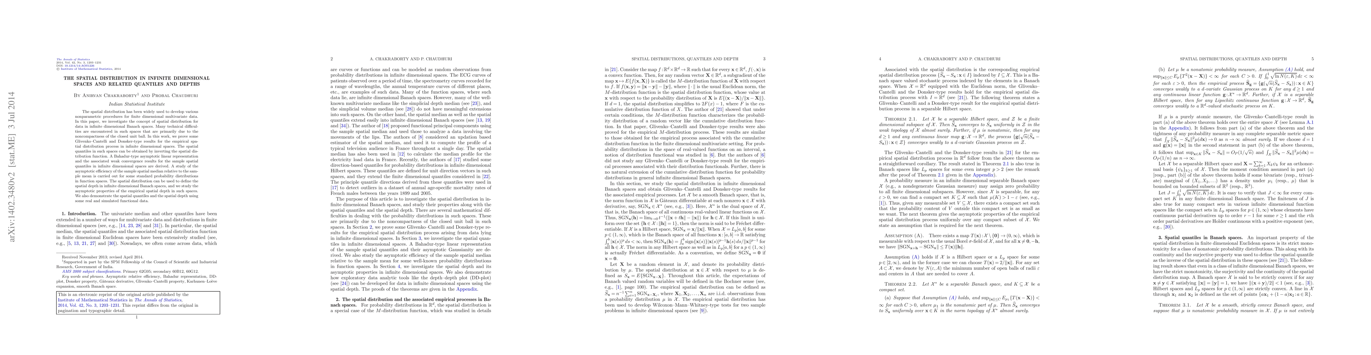 This paper explores the spatial distribution and related quantiles and depths in infinite-dimensional Banach spaces, addressing technical challenges due to noncompactness. It proves Glivenko-Cantelli and Donsker-type results for empirical spatial distributions and derives asymptotic properties for spatial quantiles and depths, demonstrating their application through real and simulated functional data.
