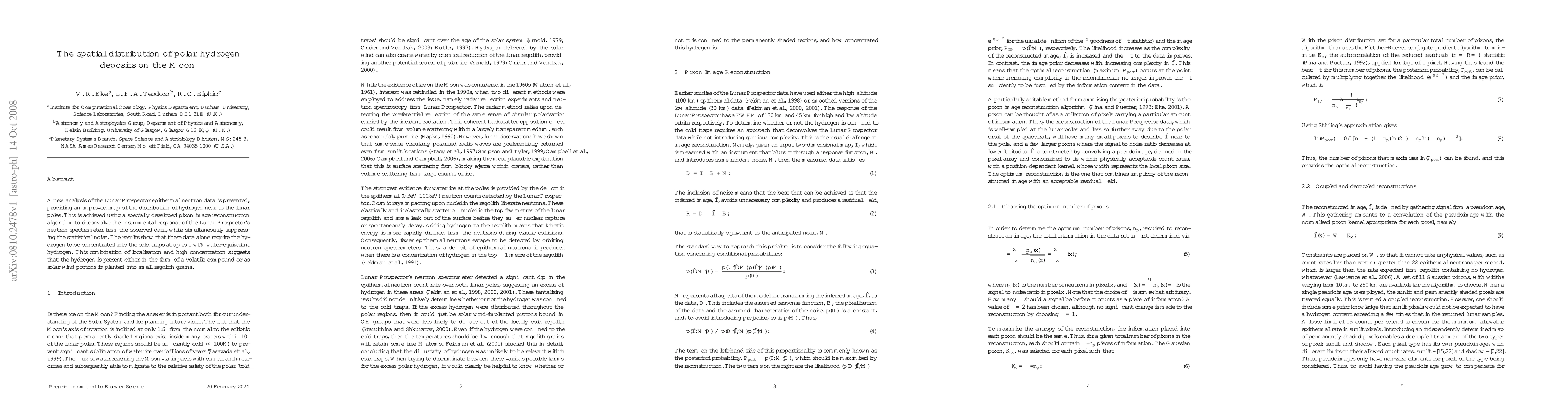 This research uses a new pixon image reconstruction algorithm to analyze Lunar Prospector data, revealing a high concentration of hydrogen (up to 1 wt% water-equivalent) near the Moon's poles, likely in the form of volatile compounds or solar wind protons trapped in regolith grains.