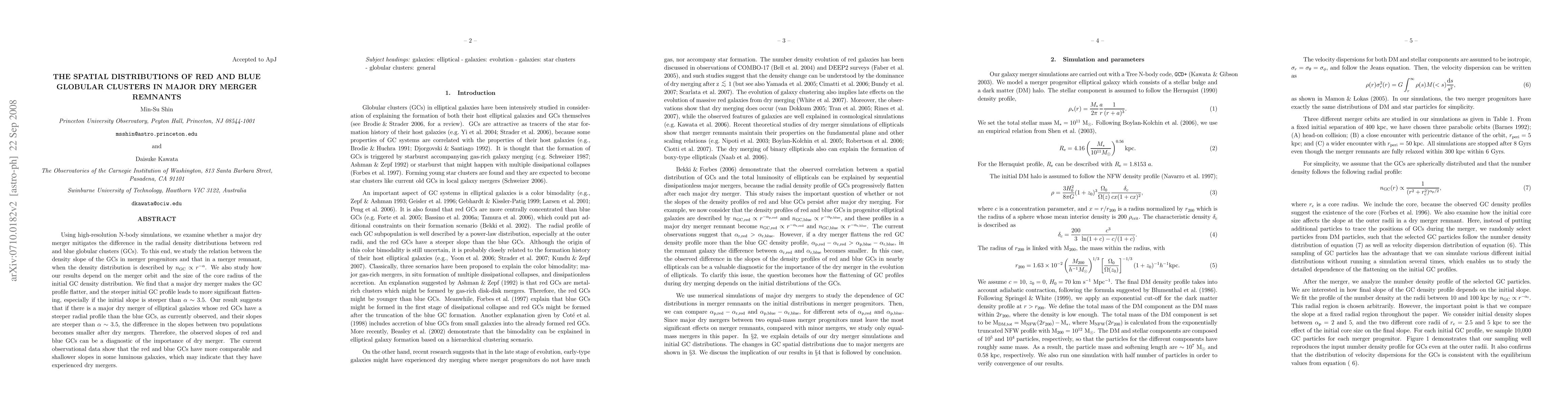 Major dry mergers flatten the density profiles of red and blue globular clusters, making their slopes more comparable, suggesting that such mergers could explain the observed similarities in their slopes in some galaxies.
