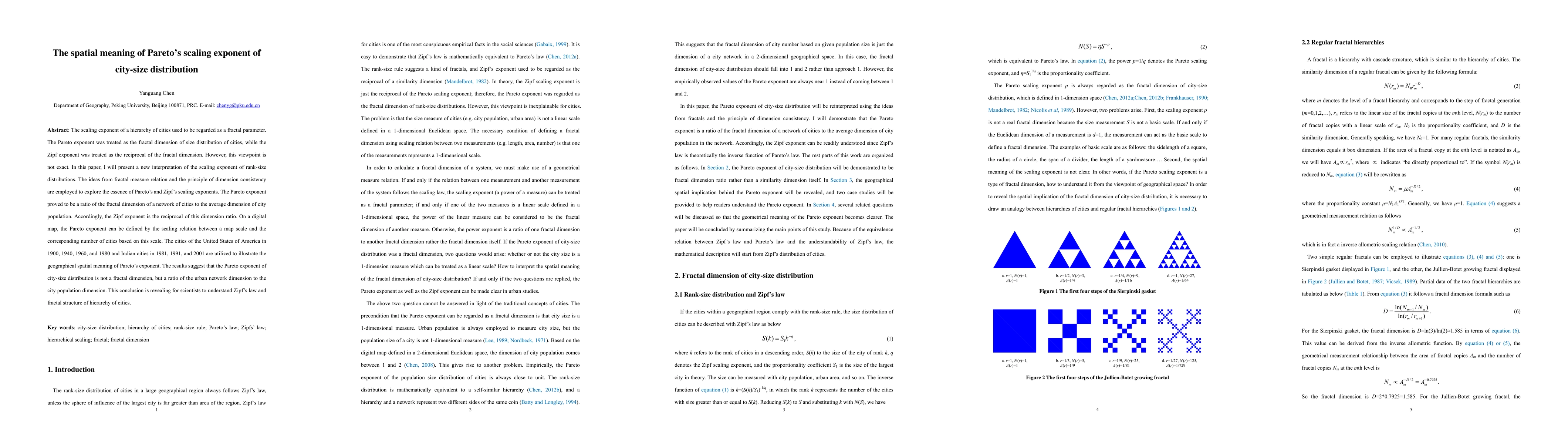 This paper reinterprets Pareto's scaling exponent in city-size distribution, showing it is a ratio of the urban network's fractal dimension to the city population's average dimension, rather than a fractal dimension itself. The findings provide new insights into understanding Zipf's law and the fractal structure of city hierarchies.