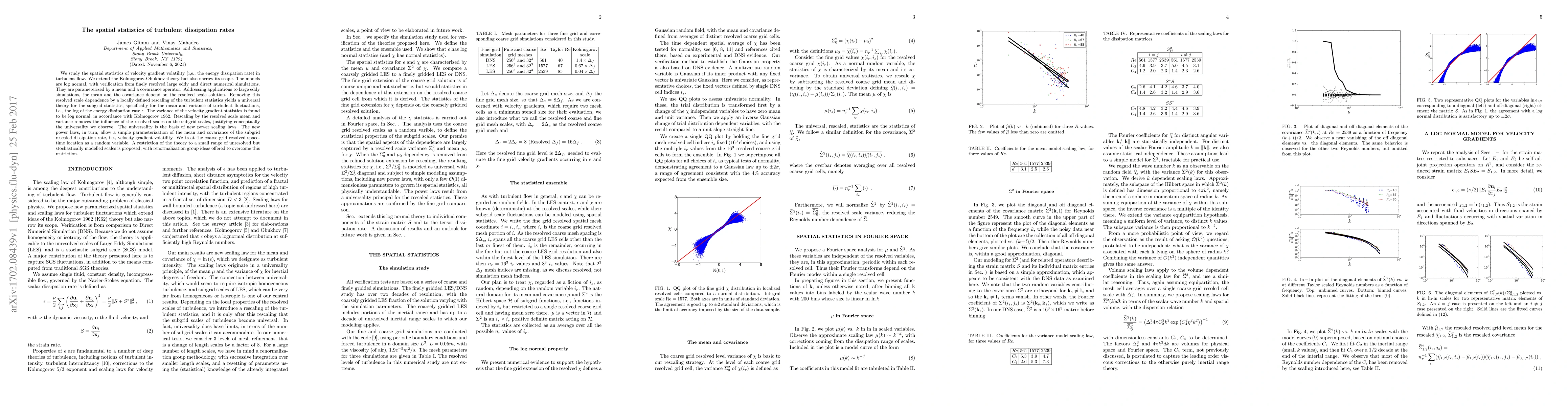 This paper develops a universal theory for the spatial statistics of turbulent dissipation rates, extending the Kolmogorov-Obukhov model. It introduces a log-normal model for the variance of velocity gradient statistics, verified through simulations, and proposes new power scaling laws for subgrid statistics.