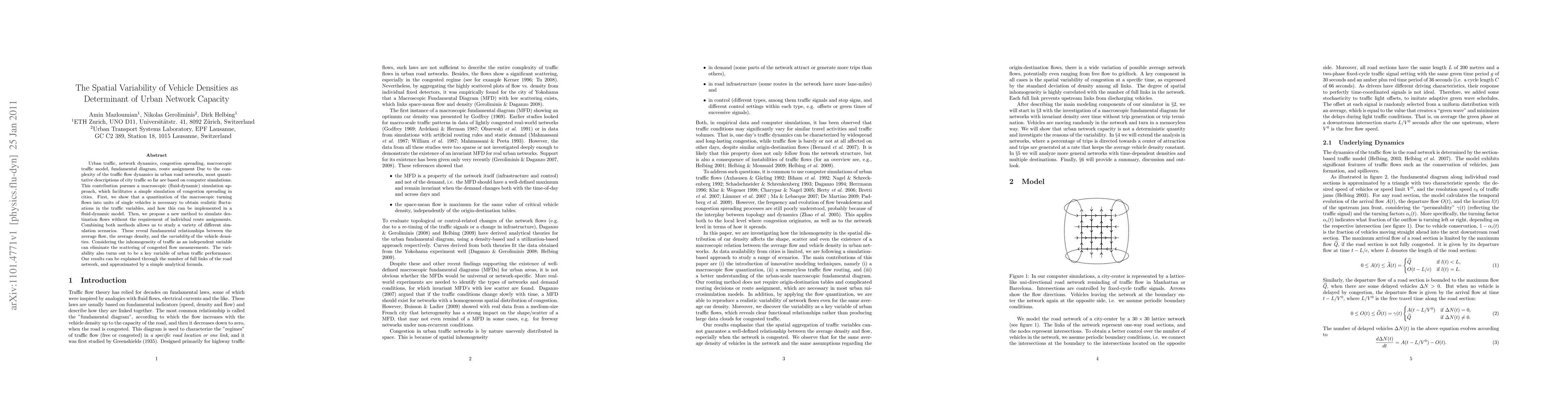 Due to the complexity of the traffic flow dynamics in urban road networks, most quantitative descriptions of city traffic so far are based on computer simulations. This contribution pursues a macroscopic (fluid-dynamic) simulation approach, which facilitates a simple simulation of congestion spreading in cities. First, we show that a quantization of the macroscopic turning flows into units of single vehicles is necessary to obtain realistic fluctuations in the traffic variables, and how this can be implemented in a fluid-dynamic model. Then, we propose a new method to simulate destination flows without the requirement of individual route assignments. Combining both methods allows us to study a variety of different simulation scenarios. These reveal fundamental relationships between the average flow, the average density, and the variability of the vehicle densities. Considering the inhomogeneity of traffic as an independent variable can eliminate the scattering of congested flow measurements. The variability also turns out to be a key variable of urban traffic performance. Our results can be explained through the number of full links of the road network, and approximated by a simple analytical formula.