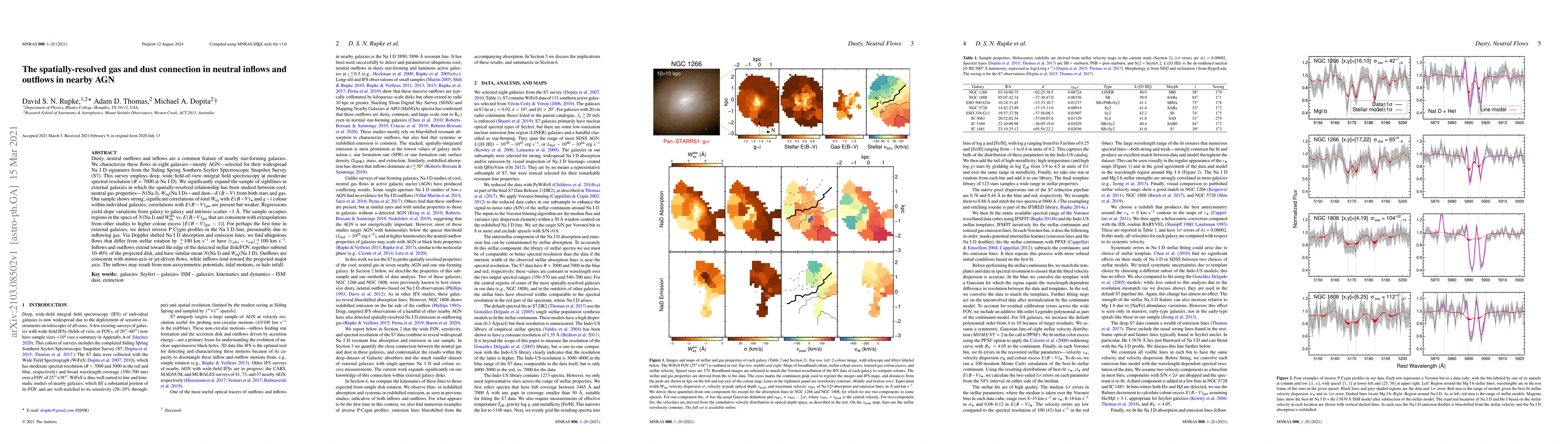 This study investigates the spatially-resolved relationships between neutral gas and dust in inflows and outflows of eight nearby AGN galaxies, revealing significant correlations between gas properties and stellar dust. It finds that inflows and outflows extend to the edges of the stellar disks and are driven by various mechanisms, including tidal motions and halo infall.