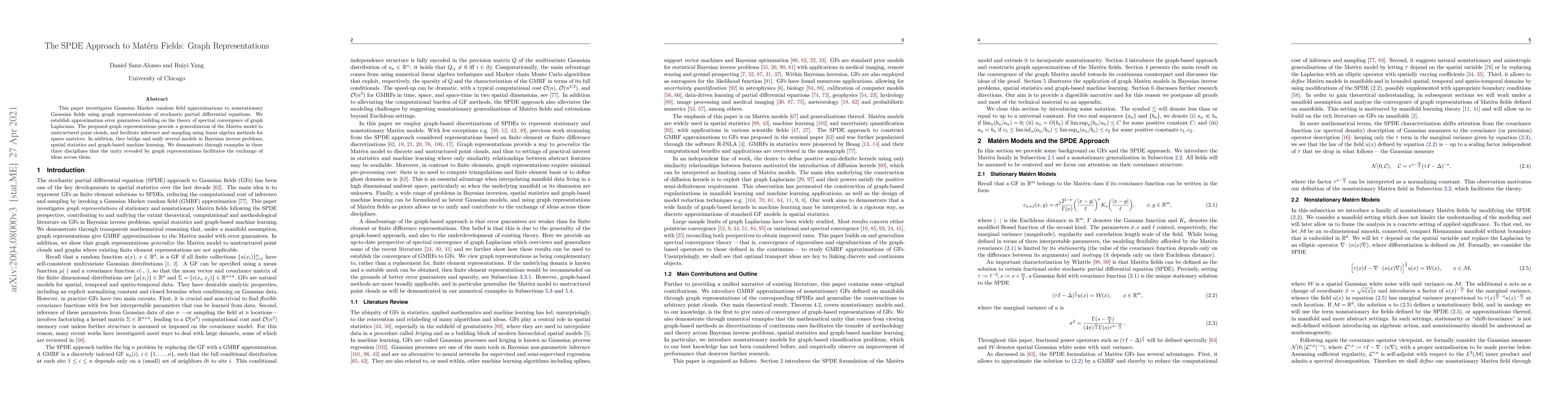 This paper investigates Gaussian Markov random field approximations to nonstationary Gaussian fields using graph representations of stochastic partial differential equations. We establish approximation error guarantees building on the theory of spectral convergence of graph Laplacians. The proposed graph representations provide a generalization of the Mat\'ern model to unstructured point clouds, and facilitate inference and sampling using linear algebra methods for sparse matrices. In addition, they bridge and unify several models in Bayesian inverse problems, spatial statistics and graph-based machine learning. We demonstrate through examples in these three disciplines that the unity revealed by graph representations facilitates the exchange of ideas across them.
