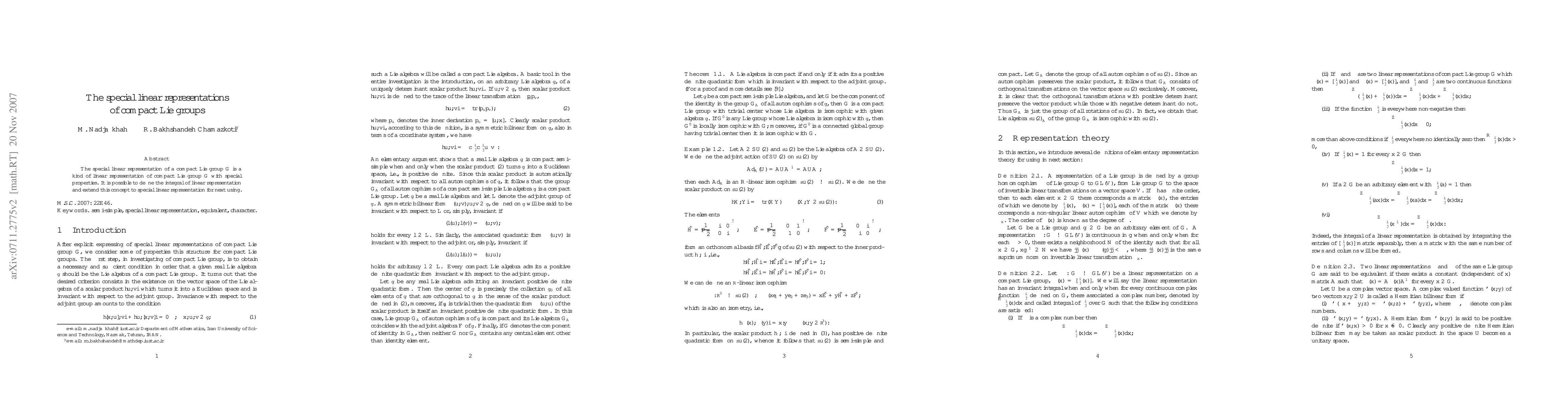 Two-line summary: This paper explores the special linear representations of compact Lie groups, focusing on their unique properties and the ability to define integrals for these representations, thus extending the foundational concepts for further applications. The study lays the groundwork for deeper analysis in the realm of representation theory.