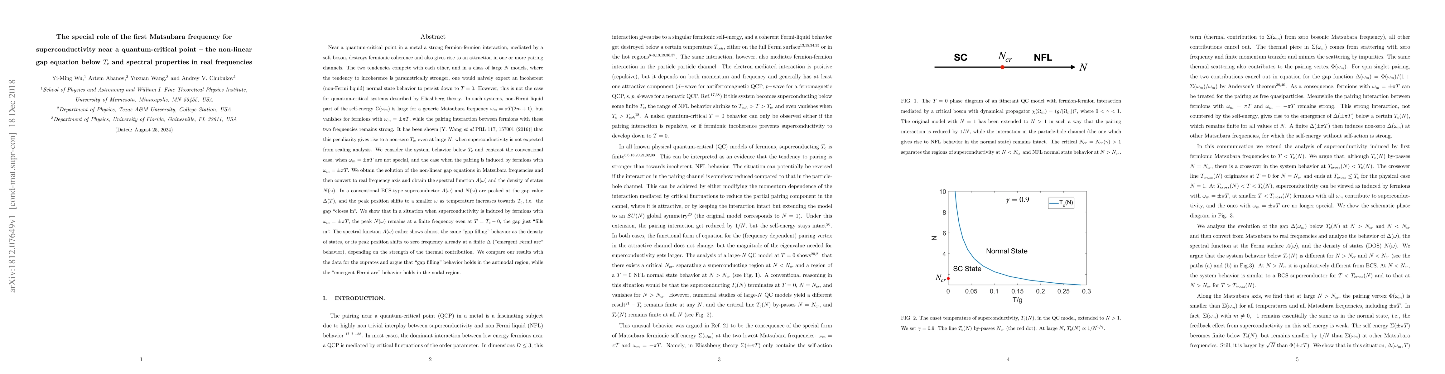 Near a quantum-critical point in a metal a strong fermion-fermion interaction, mediated by a soft boson, destroys fermionic coherence and also gives rise to superconductivity. In a class of large $N$ models, one would naively expect an incoherent (non-Fermi liquid) normal state behavior to persist down to $T=0$. However, this is not the case for quantum-critical systems described by Eliashberg theory, where non-Fermi liquid part of the self-energy $\Sigma (\omega_m)$ is large for a generic Matsubara frequency $\omega_m = \pi T(2m+1)$, but vanishes at $\omega_m = \pm \pi T$, while the pairing interaction between fermions with these two frequencies remains strong. This peculiarity gives rise to a non-zero $T_c$ even at large $N$[Y. Wang et al PRL 117, 157001 (2016)]. We consider the system behavior below $T_c$ and contrast the two cases when $\omega_m = \pm \pi T$ are either special or not. We obtain the solution of the non-linear gap equations in real frequency axis and obtain the spectral function $A(\omega)$ and the density of states $N(\omega)$. In a conventional BCS-type superconductor $A(\omega)$ and $N(\omega)$ are peaked at the gap value $\Delta (T)$, and the peak position shifts to a smaller $\omega$ as temperature increases, i.e. the gap "closes in". However when superconductivity is induced by fermions with $\omega_m = \pm \pi T$, the peak in $N(\omega)$ remains at a finite frequency even at $T =T_c-0$, the gap just "fills in". The spectral function $A(\omega)$ either shows almost the same "gap filling" behavior, or its peak position shifts to zero frequency already at a finite $\Delta$ ("emergent Fermi arc" behavior), depending on the strength of the thermal contribution. We compare our results with the data for the cuprates and argue that "gap filling" behavior holds in the antinodal region, while the "emergent Fermi arc" behavior holds in the nodal region.