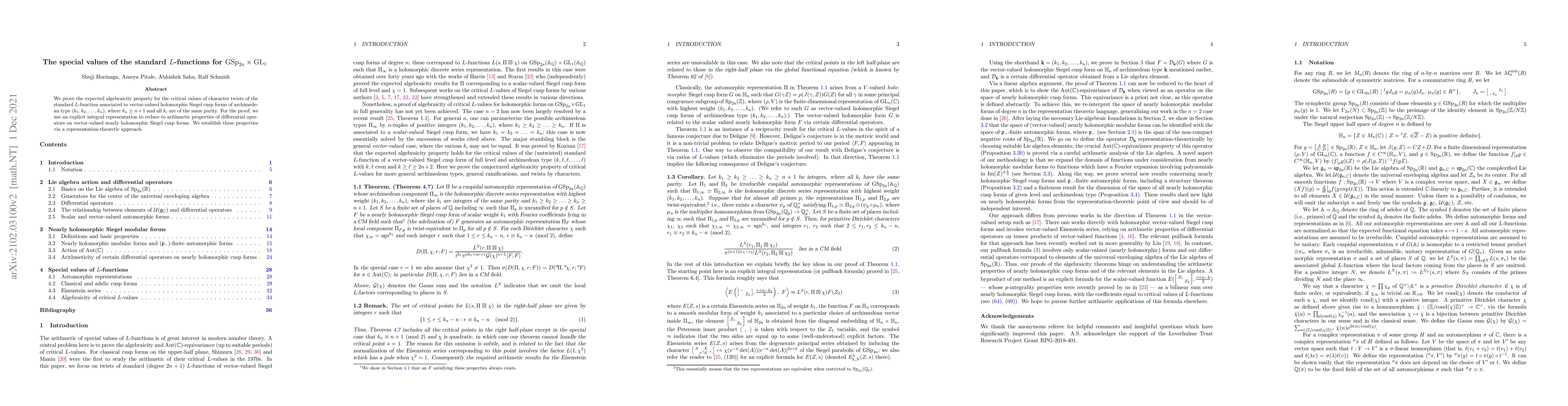 We prove the expected algebraicity property for the critical values of character twists of the standard $L$-function associated to vector-valued holomorphic Siegel cusp forms of archimedean type $(k_1, k_2, \ldots, k_n)$, where $k_n \geq n+1$ and all $k_i$ are of the same parity. For the proof, we use an explicit integral representation to reduce to arithmetic properties of differential operators on vector-valued nearly holomorphic Siegel cusp forms. We establish these properties via a representation-theoretic approach.