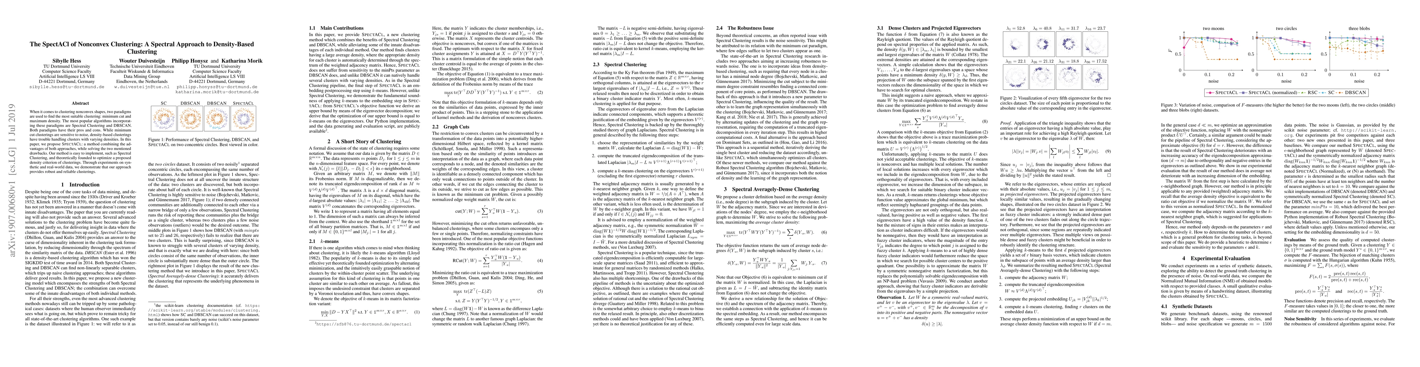 When it comes to clustering nonconvex shapes, two paradigms are used to find the most suitable clustering: minimum cut and maximum density. The most popular algorithms incorporating these paradigms are Spectral Clustering and DBSCAN. Both paradigms have their pros and cons. While minimum cut clusterings are sensitive to noise, density-based clusterings have trouble handling clusters with varying densities. In this paper, we propose \textsc{SpectACl}: a method combining the advantages of both approaches, while solving the two mentioned drawbacks. Our method is easy to implement, such as spectral clustering, and theoretically founded to optimize a proposed density criterion of clusterings. Through experiments on synthetic and real-world data, we demonstrate that our approach provides robust and reliable clusterings.