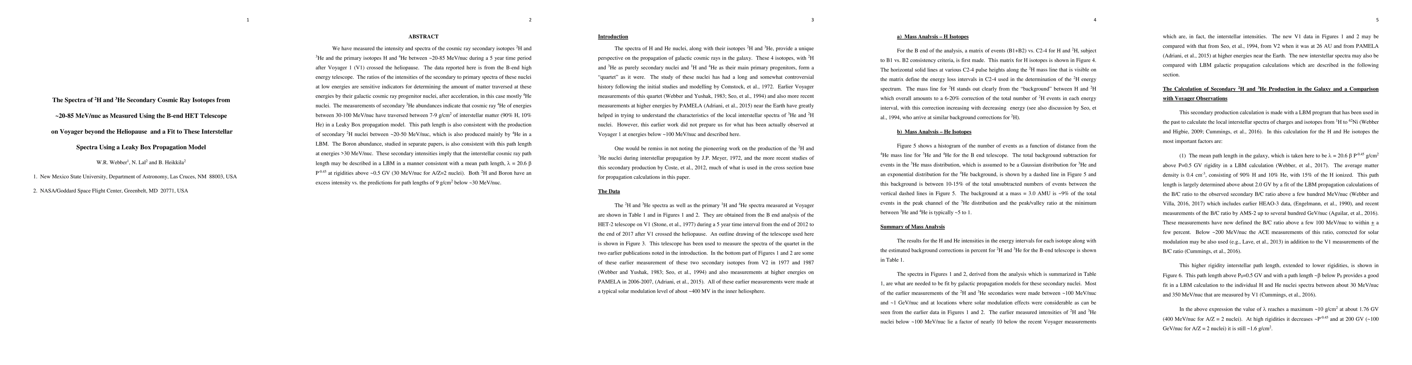 This study measures the spectra of cosmic ray isotopes 2H, 3He, H, and 4He from 20-85 MeV/nuc post-heliopause using Voyager's B-end HET telescope. The findings suggest that 4He nuclei of 30-100 MeV/nuc traverse 7-9 g/cm² of interstellar matter, consistent with a Leaky Box Propagation Model.