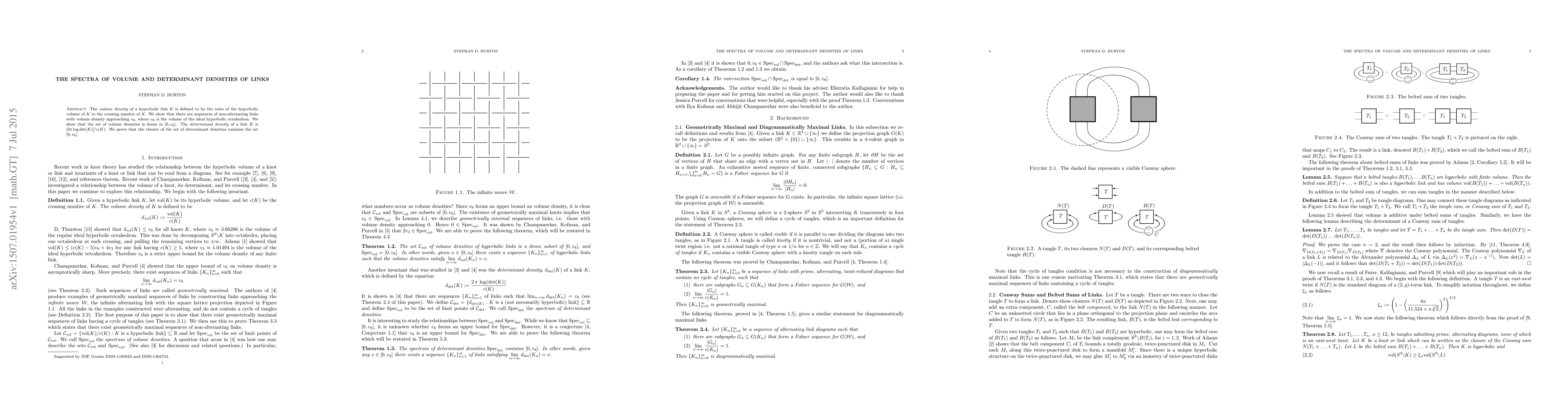 The $\textit{volume density}$ of a hyperbolic link $K$ is defined to be the ratio of the hyperbolic volume of $K$ to the crossing number of $K$. We show that there are sequences of non-alternating links with volume density approaching $v_8$, where $v_8$ is the volume of the ideal hyperbolic octahedron. We show that the set of volume densities is dense in $[0,v_8]$. The $\textit{determinant density}$ of a link $K$ is $[2 \pi \log \det(K)]/c(K)$. We prove that the closure of the set of determinant densities contains the set $[0, v_8]$.