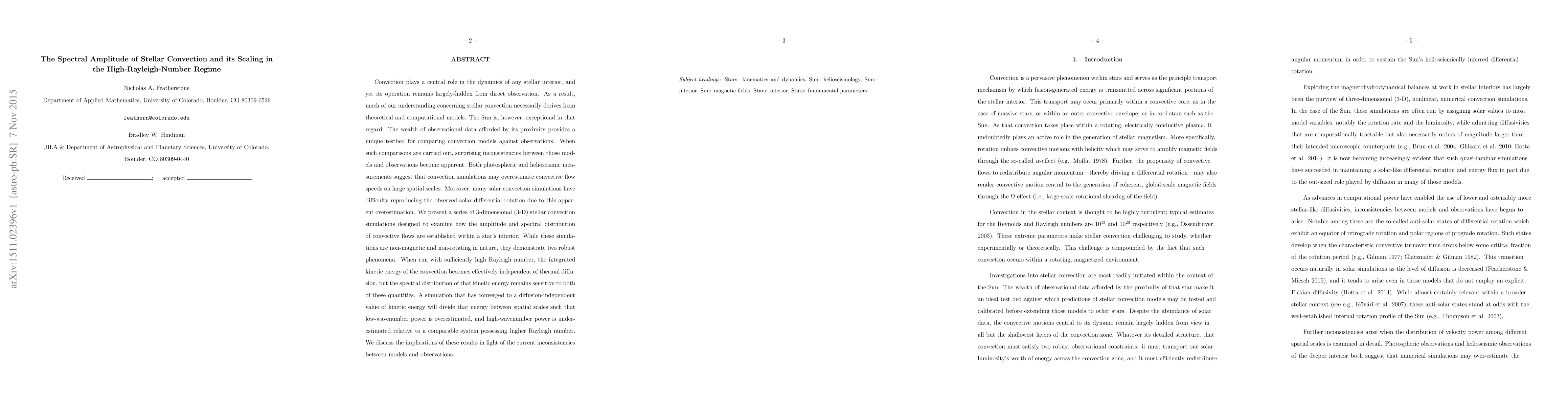 Convection plays a central role in the dynamics of any stellar interior, and yet its operation remains largely-hidden from direct observation. As a result, much of our understanding concerning stellar convection necessarily derives from theoretical and computational models. The Sun is, however, exceptional in that regard. The wealth of observational data afforded by its proximity provides a unique testbed for comparing convection models against observations. When such comparisons are carried out, surprising inconsistencies between those models and observations become apparent. Both photospheric and helioseismic measurements suggest that convection simulations may overestimate convective flow speeds on large spatial scales. Moreover, many solar convection simulations have difficulty reproducing the observed solar differential rotation due to this apparent overestimation. We present a series of 3-dimensional (3-D) stellar convection simulations designed to examine how the amplitude and spectral distribution of convective flows are established within a star's interior. While these simulations are non-magnetic and non-rotating in nature, they demonstrate two robust phenomena. When run with sufficiently high Rayleigh number, the integrated kinetic energy of the convection becomes effectively independent of thermal diffusion, but the spectral distribution of that kinetic energy remains sensitive to both of these quantities. A simulation that has converged to a diffusion-independent value of kinetic energy will divide that energy between spatial scales such that low-wavenumber power is overestimated, and high-wavenumber power is underestimated relative to a comparable system possessing higher Rayleigh number. We discuss the implications of these results in light of the current inconsistencies between models and observations.