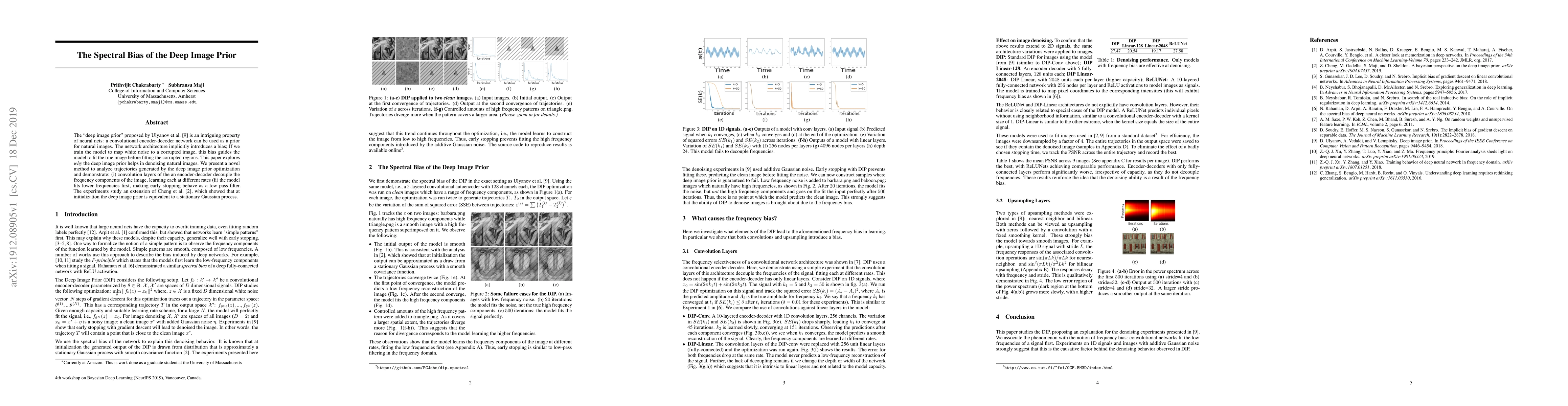 This paper investigates the spectral bias of the deep image prior, demonstrating that convolutional layers decouple image frequency components at different rates, leading the model to prioritize lower frequencies initially. This behavior is shown to enhance denoising performance, akin to a low pass filter effect.